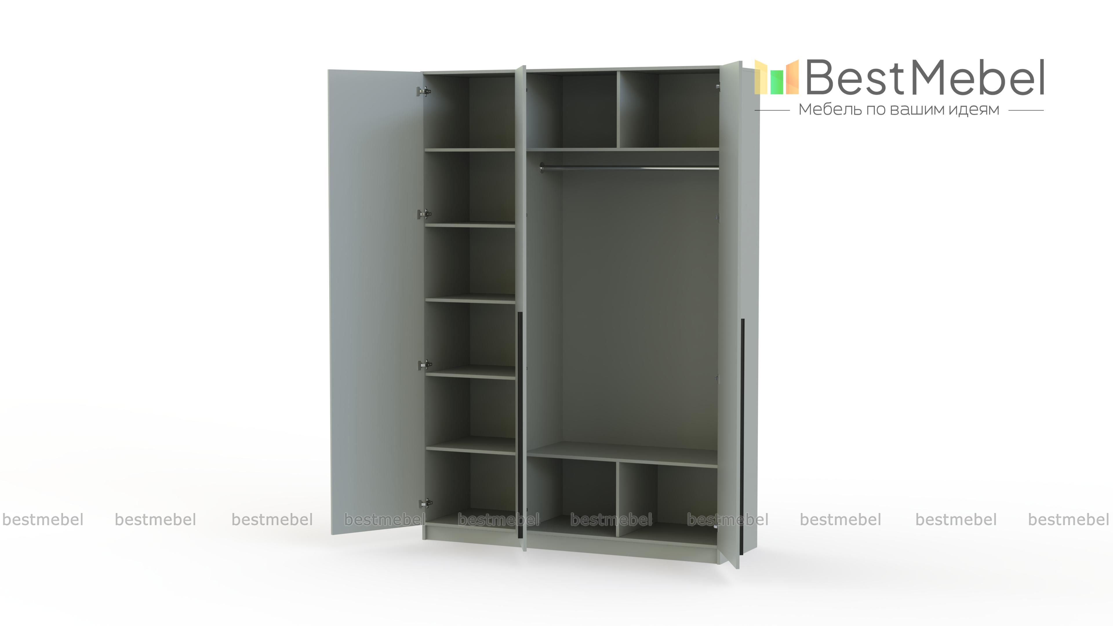 Шкаф распашной Айва 18 BMS поможет содержать в порядке одежду и обувь одного-двух человек. Трехдверная конструкция с платяным отделением и полками для белья имеет компактные размеры и современную отделку сплошного фасада, выполненного в базовом светлом оттенке. Удобный доступ к содержимому шкафа обеспечивают удлиненные стильные ручки. Купить шкаф распашной Айва 18 BMS с выбором размеров, цвета и наполнения вы сможете на сайте нашего интернет-магазина.