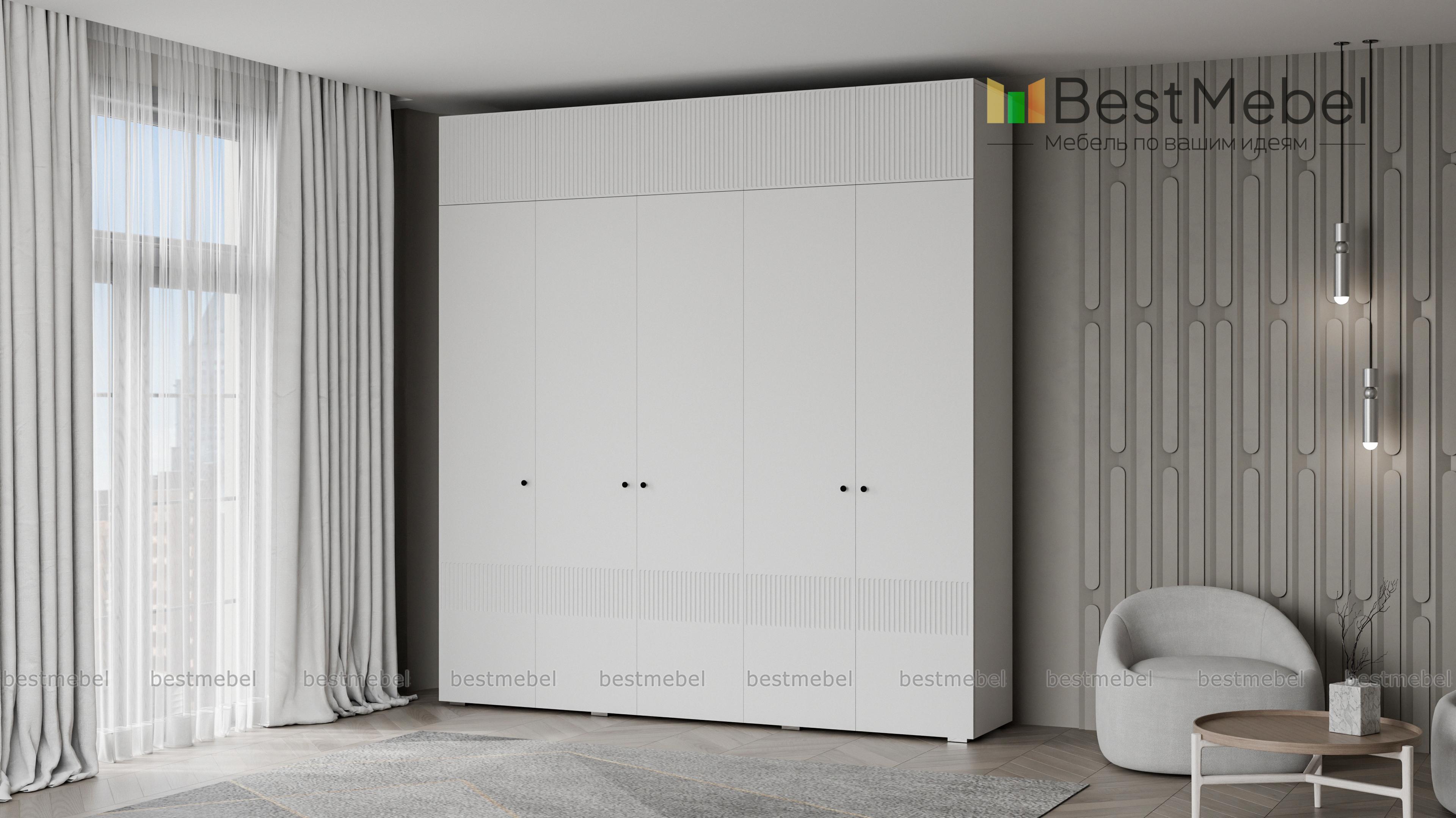 Шкаф распашной Джосс 11 BMS с антресолью — практичное и эстетическое решение для вашего дома. Пространство будет занято до потолка — значит, появится больше места для хранения как повседневного, так и сезонного гардероба. Внутри пятидверного шкафа располагаются две штанги и ряд бельевых полок, а сплошной фасад яркого аквамаринового цвета декорирован стильным рельефом. Купить шкаф распашной Джосс 11 BMS вы сможете на сайте нашего интернет-магазина в необходимом размере и любых оттенках из каталога.