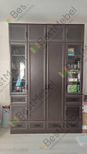Шкаф распашной Фауст 4 BMS привлекает наличием разноплановых отделений, благодаря которым вы сможете компактно разместить одежду, книги, посуду, декоративные предметы и множество бытовых мелочей. Модель оборудована платяным двухдверным отделением, глухими секциями и витринами, выдвижными ящиками и просторной антресолью. Рамочные фасады с ручками-рейлингами выглядят элегантно в контрастных древесных тонах. Купить шкаф распашной Фауст 4 BMS для меблировки гостиной приглашаем в наш интернет-магазин.