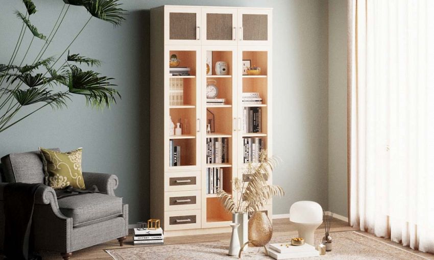 Шкаф распашной Фауст 7 BMS отличается небольшой шириной, но вместителен за счет высоты и практичной комбинированной конструкции. Модель оборудована распашными застекленными отделениями для книг, посуды и предметов декора, шестью выдвижными ящиками для мелочей и просторной распашной антресолью, незаменимой для хранения сезонных вещей. Рамки фасадов выполнены в контрастных древесных тонах и гармонично смотрятся в интерьере гостиной. Купить шкаф распашной Фауст 7 BMS приглашаем выгодно в наш интернет-магазин.