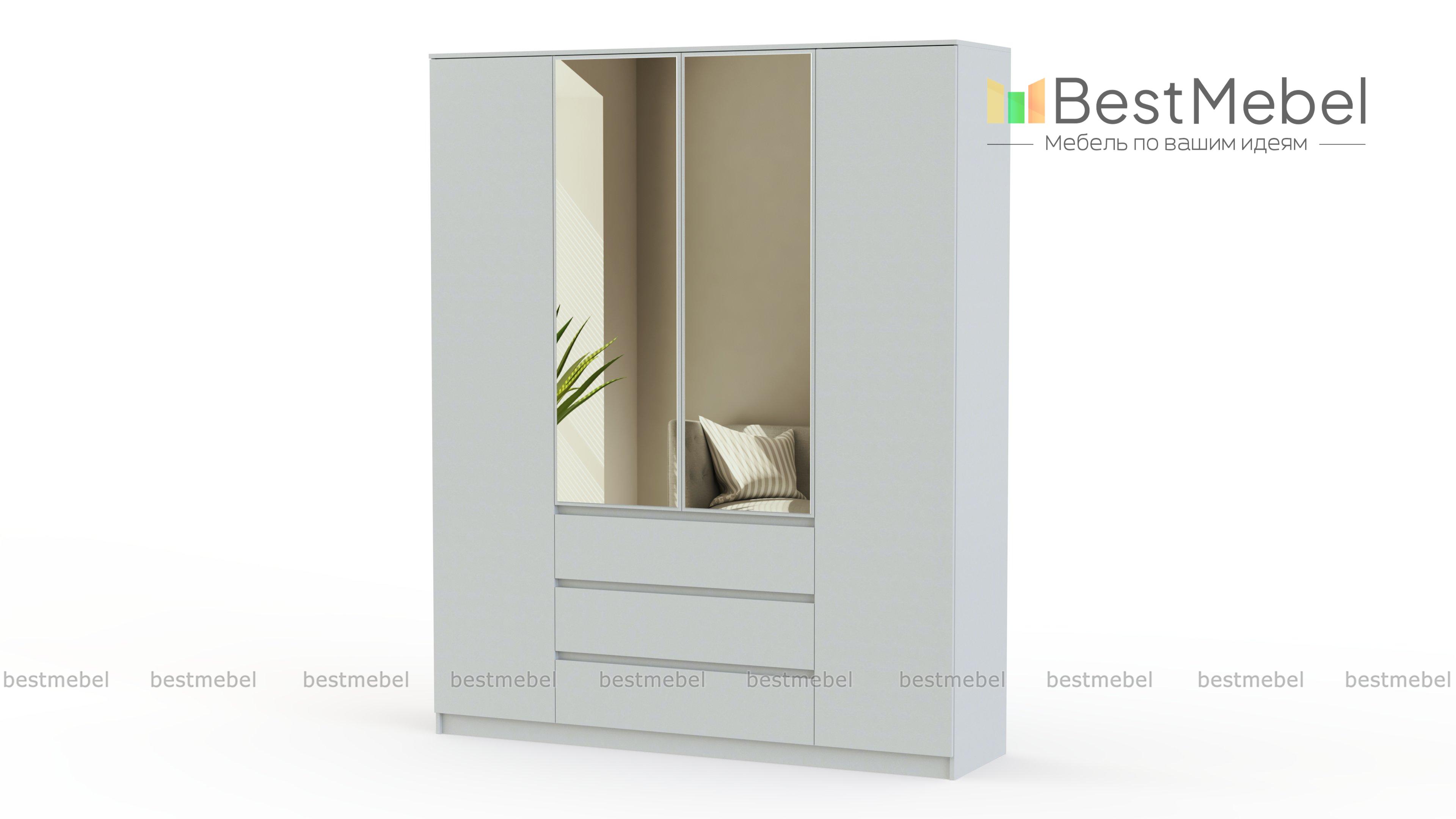 Шкаф распашной Мальм Malm 13 создан для ценителей минимализма и простых функциональных решений. Четыре распашные дверцы скрывают платяные и бельевые отделения, а для мелкого трикотажа конструкцией предусмотрены три ящика с плавным выдвижением. Максимально лаконичный, шкаф изготовлен из износостойкой ламинированной плиты в базовом оттенке, центральные створки - полностью зеркальные. Купить шкаф распашной Мальм Malm 13 для меблировки современной спальни вы сможете недорого в нашем интернет-магазине. Выбирайте мебель в стиле IKEA (ИКЕА) от производителя BestMebelShop!