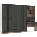 Шкаф распашной Перси 3 BMS представляет собой комбинированную модель, объединившую удобную систему хранения с рабочей зоной. Пятидверный шкаф с двумя платяными отделениями, одним бельевым и выдвижными ящиками для мелочей дополнен компьютерным столиком с надстройкой и банкеткой. Гармонично вписаться в современные интерьеры поможет сочетание нейтрально-серых фрезерованных фасадов с корпусом в древесных тонах. Купить шкаф распашной Перси 3 BMS приглашаем выгодно в наш интернет-магазин.