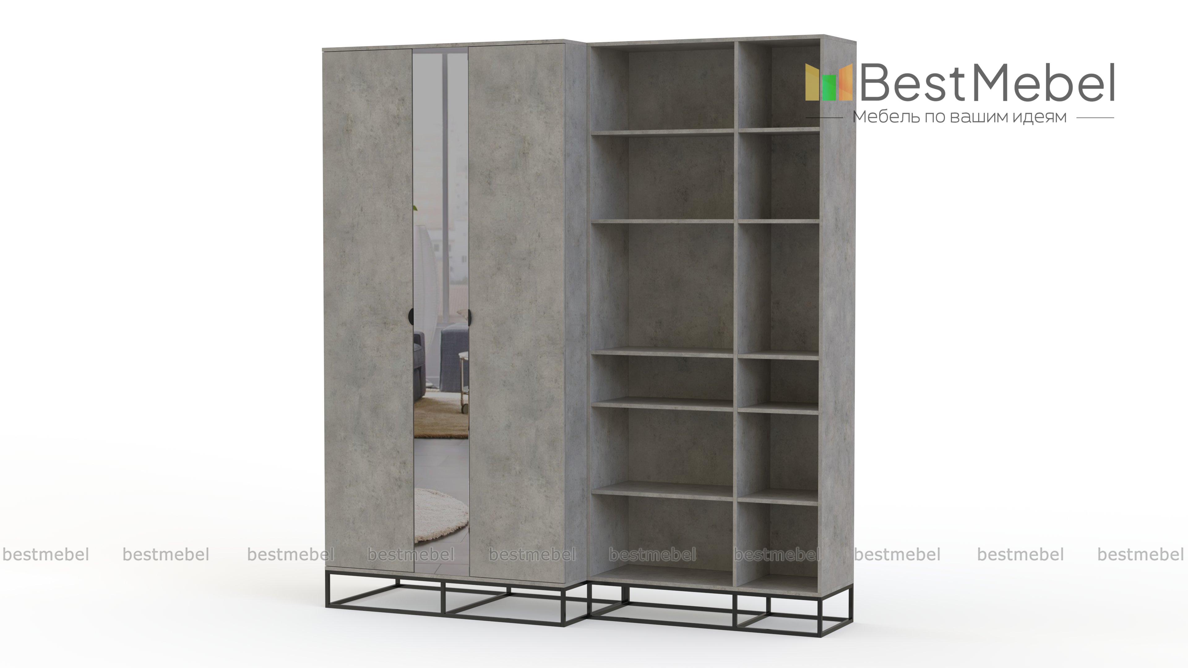 Шкаф распашной Пиксель 18 BMS в комплекте с высоким книжным стеллажом позволит разместить не только предметы гардероба, но и домашнюю библиотеку, бытовые мелочи и любимый декор. Эффектная композиция в стиле лофт сочетает поверхности с имитацией древесной фактуры и износостойкий окрашенный металл. Узкое зеркало визуально делит шкаф на две части и придает комнате дополнительную глубину. Купить шкаф распашной Пиксель 18 BMS приглашаем в наш интернет-магазин с выбором цвета по каталогу.