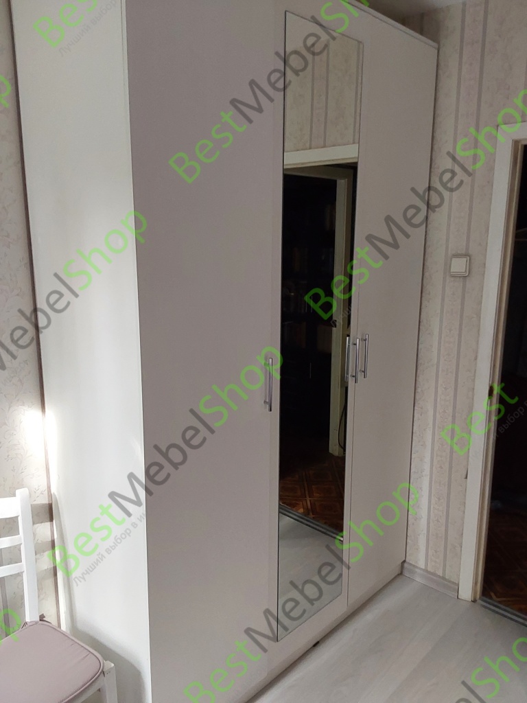 Заказ 00000907751. Это уже четвертый шкаф, заказанный здесь. Очень нравится, что можно выбрать мебель по своим параметрам. Я заказывала все шкафы в цвете "Белый-структура дерева". Ездила в шоурум и там выбрала именно этот цвет. Все шкафы муж собирал сам. Дверь с зеркалом мы поставили не по центру, а справа. Нам так удобнее. Качеством шкафов довольны. Самое главное выбирать толстую кромку. Получается дороже, но оно того стоит. Единственный минус - дверь с зеркалом очень тяжелая. Также мы заказали зеркало на боковину шкафа. Наполнение шкафа тоже выбрали в соответствии со своими нуждами. Также нужна было дополнительная штанга. Все пожелания магазином были учтены, подготовлены необходимые отверстия. Шкаф нам сделали за 4 дня