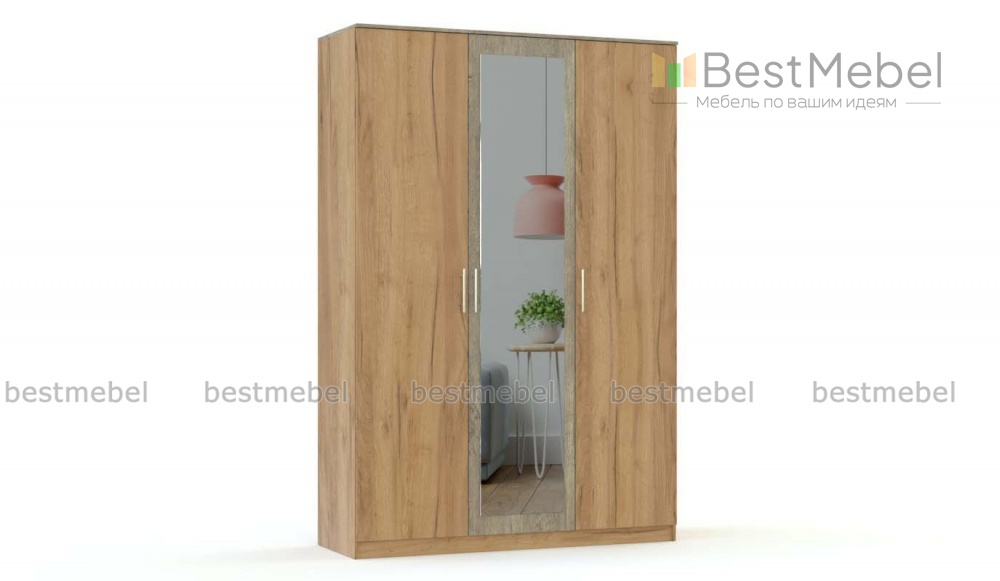 Шкаф распашной Вера BMS вы сможете разместить в спальне, гостиной или прихожей. Трехдверная модель отличается лаконичным дизайном и выполнена из ЛДСП в теплых древесных тонах. Шкаф оборудован всем необходимым для хранения одежды на плечиках и постельных принадлежностей, а ростовое зеркало на фасаде заменит отдельный аксессуар и придаст небольшой комнате глубину. Купить шкаф распашной Вера BMS с выбором цвета и фурнитуры по каталогу приглашаем в наш интернет-магазин.