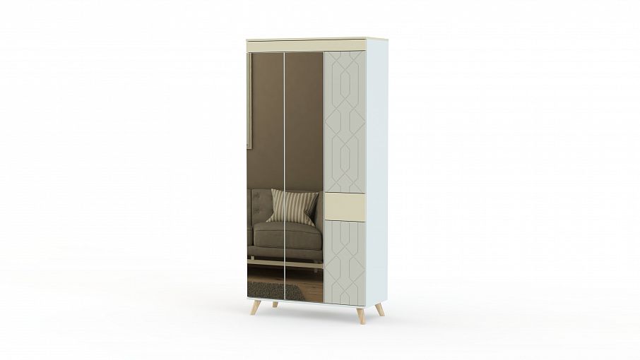 Шкаф распашной Веста 15 BMS прекрасно сочетается с предметами коллекции для прихожей и легко вписывается в современные спальни. Элегантный гардероб на высоких скошенных опорах выполнен в пастельных оттенках и украшен геометрическим орнаментом. Платяное отделение закрывают полностью зеркальные створки, а для прочих вещей предусмотрены полки и выдвижной ящик. Купить шкаф распашной Веста 15 BMS с выбором размеров и цвета по каталогу вы сможете в нашем интернет-магазине.
