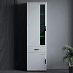 Шкаф Уран BMS – эффектная модель современного дизайна, которая станет практичным дополнением и интересным акцентом в интерьере гостиной или спальни. Компактный по размеру и простой по форме, шкаф смотрится выигрышно в сочетании белого глянца и древесных поверхностей, фасады декорированы стеклянной вставкой и накладкой под кожу рептилии. Верхнее витринное отделение с полками дополнено выдвижным ящичком для мелочей и распашной секцией в основании. Купить шкаф Уран BMS вы сможете быстро и недорого в нашем интернет-магазине.
