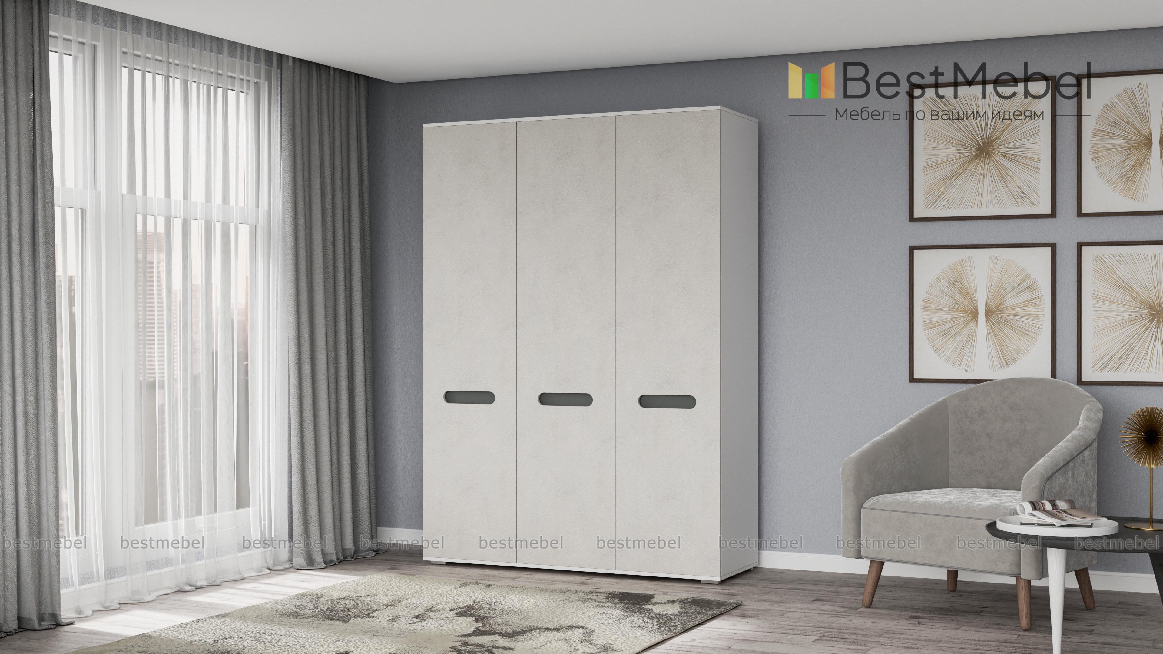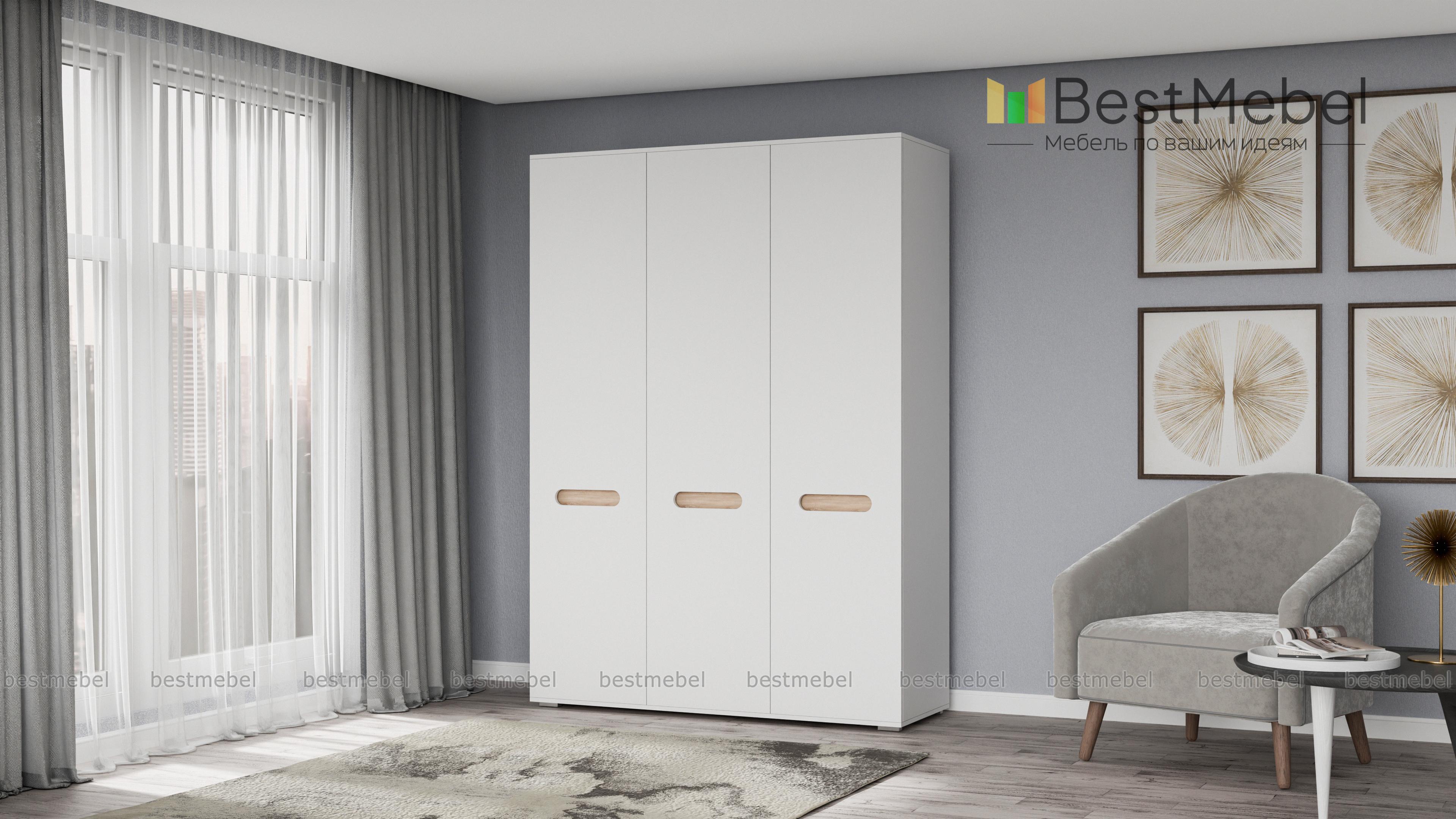 Шкаф Эдип 3 BMS выполнен из экологичных материалов и отвечает всем требованиям, предъявляемым к современной мебели. Роскошная трехдверная модель с белоснежными матовыми фасадами, декорированными контрастными вставками, станет эффектным и практичным дополнением интерьера спальни или гостиной. Внутреннее наполнение шкафа – просторное платяное отделение со штангой и полки, - позволит бережно разместить предметы гардероба. Купить Шкаф Эдип 3 BMS приглашаем в наш интернет-магазин по лучшей цене.