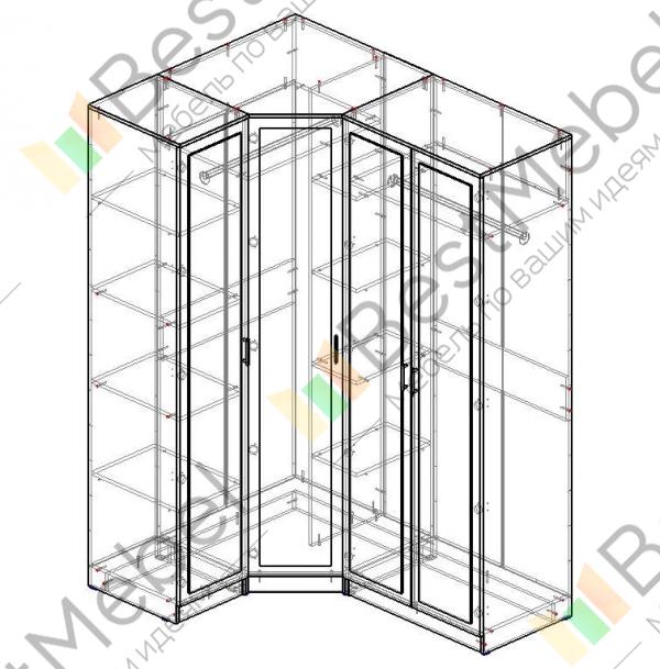 Распашной шкаф Меркурий-1 понравится любителям минималистичной классики. Конструкция состоит из 2-х дверного шкафа, углового отделения с зеркалом и пенала. Благодаря угловому расположению, изделие смягчает углы помещения и делает комнату визуально больше. Ростовое зеркало по центру добавит легкости внешнему виду. Фасад не содержит лишних деталей, а широкая цветовая гамма позволит подобрать мебель точно под интерьер. Если Вас заинтересовала модель, купить ее можно на нашем сайте.