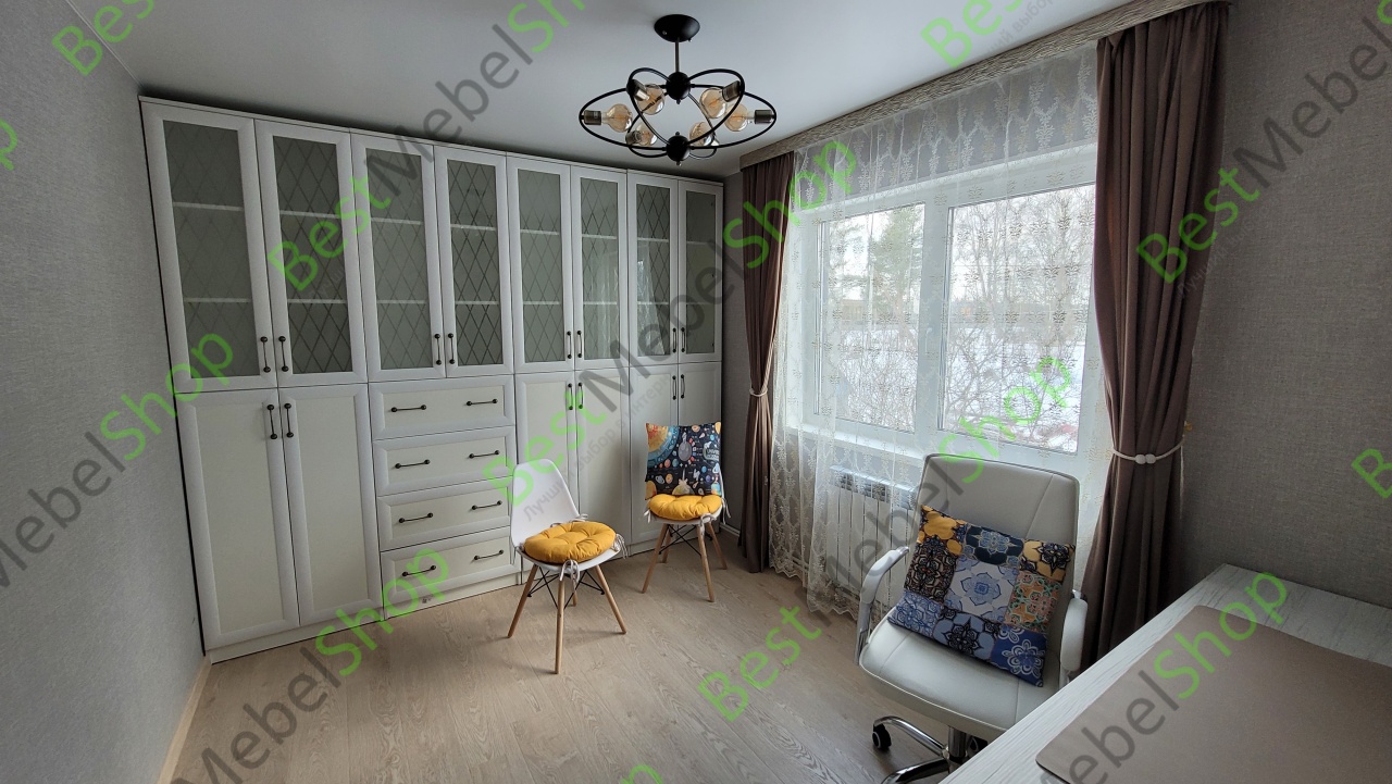 В целом неплохой бюджетный шкаф. Но в мелочах очень заметен отечественный подход к созданию мебели. Делали по своим размерам. Рекомендация: не экономьте на фасадах, выбирайте не тот, который идёт по умолчанию. Потому что первые довольно хлипкие, немного прозрачные, дешевизна вблизи видна. Доводчики в ящики выбирайте импортные, наши очень тугие. Можно сэкономить на кромке, она тут не особо нужна. Ну и не экономьте на сборке, лучше заплатить ещё тысяч 5-7, чем собирать две недели с матами и инструкцией в одну бумажку с неразборчивыми цифрами. Если делаете только под книги, выбирайте меньшую глубину, иначе они пойдут в два ряда. Я выбрала большие 45 см, так как хотела, чтобы ещё вошли коробки с разными бумагами и мелочами. Возможно, понадобится ещё по одной полочке. Расстояние на высоту по умолчанию между полками выходит 35 см.