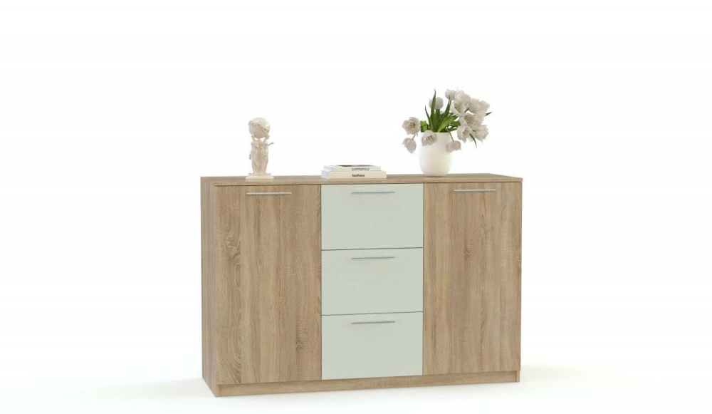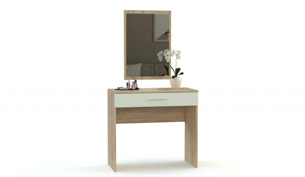 Martina-1 спальня BMS – превосходный набор мебели, выполненной в современном стиле. С его помощью легко разнообразить интерьер, удобно разместив все вещи. Беспроигрышное сочетание цветов, выбранных для оформления элементов (дуб сонома и белый), придает композиции респектабельный вид. Гармонично подобраны все составляющие гарнитура, ни один не выделяется из обшей сдержанной картины. В комплект гарнитура вошли все полагающиеся предметы. Великолепная кровать с высоким изголовьем подарит качественный сон, в тандеме с ней выступают маленькие прикроватные тумбы. Вместительный шкаф и лаконичный комод сохранят одежду и домашние вещи в порядке. Стильный туалетный столик с настенным зеркалом в красивой раме всегда уместен в спальной комнате. Купить качественный комплект Martina-1 BMS можно в режиме онлайн недорого, с бесплатной доставкой.