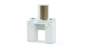 Эффектная женственная модель смотрится особенно выигрышно за счет светлой расцветки, оригинальной фурнитуры и сочетания в оформлении фасадов различных материалов. В комплекте роскошная двуспальная кровать с мягкой, изящной формы спинкой, прикроватная тумба, вместительный распашной шкаф с зеркалами в полный рост и изысканный туалетный столик. Спальня Карина 1 BMS станет отличным выбором для классического интерьера, подчеркнув все его достоинства.