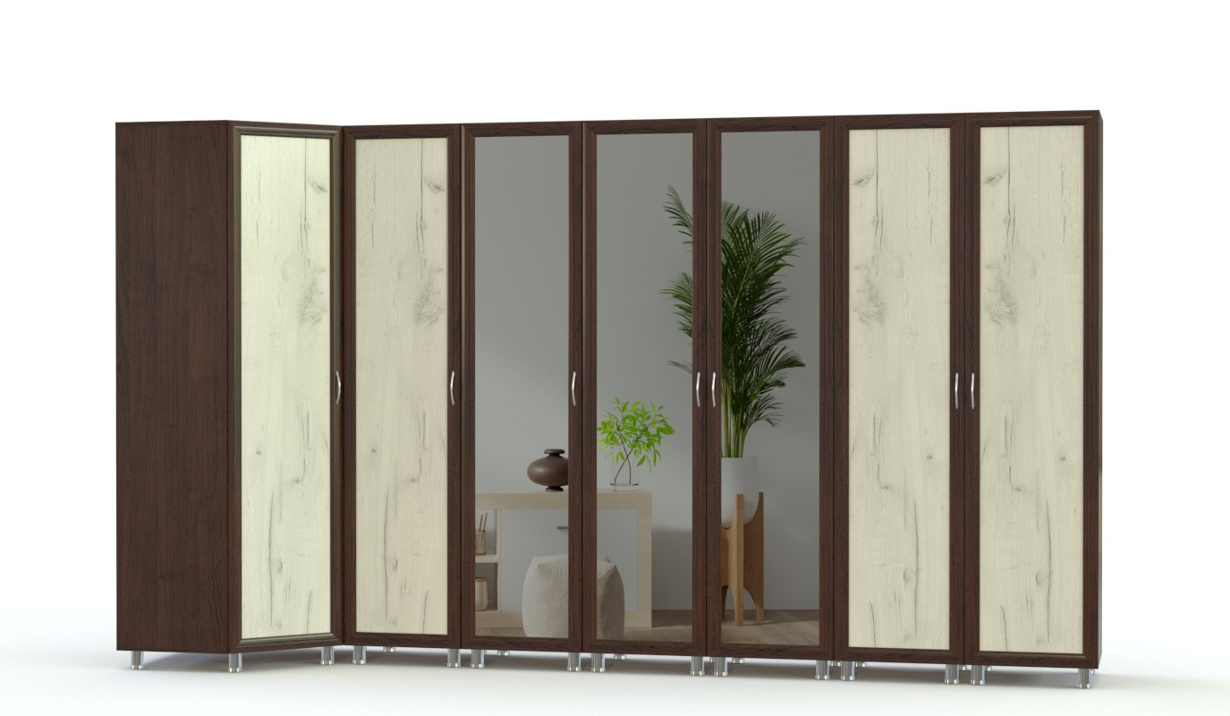 Спальня Мелина 7 BMS позволит вам рационально организовать пространство и по максимуму использовать особенности планировки. Модульный гарнитур включает в себя кровать с мягкой обивкой высокого изголовья, прикроватные тумбы и угловую композицию из распашных шкафов для белья и одежды, комбинированных пеналов, тумбы под аппаратуру и навесной полки. Рамочные фасады в древесных тонах делают интерьер уютным, а визуально расширить границы комнаты помогут зеркальные дверцы. Купить спальню Мелина 7 BMS приглашаем в наш интернет-магазин с учетом оптимальных параметров.