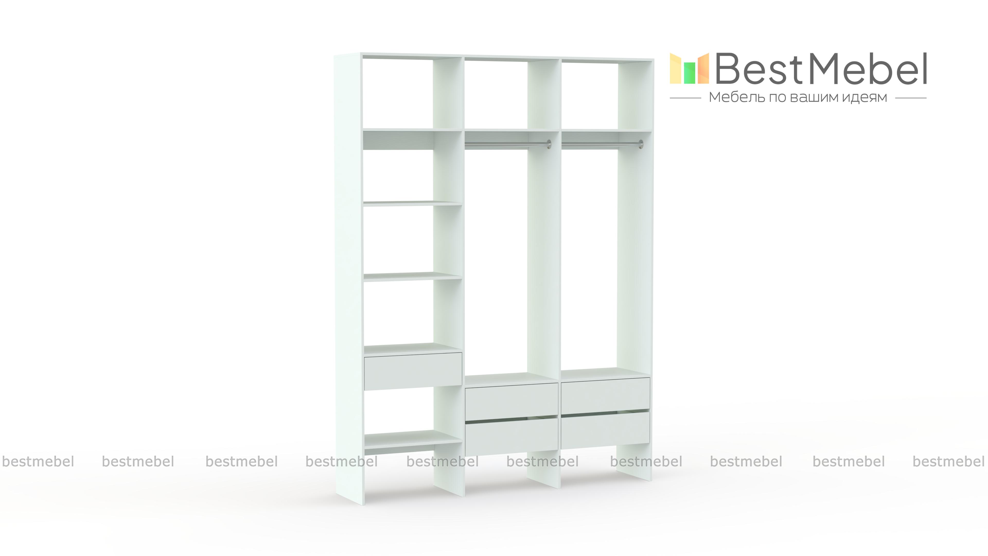 Стеллаж для одежды Мирта 53 BMS поможет вам организовать хранение в гардеробной комнате или прихожей. Открытая конструкция включает два отделения со штангами, пять выдвижных ящиков и полки, на которых можно разместить как обувь, так и стопки одежды, домашний текстиль, коробки с мелочами. Ламинированные поверхности отличаются износостойкостью и простотой ухода. Купить стеллаж для одежды Мирта 53 BMS в любом размере и оттенке из каталога приглашаем в наш интернет-магазин.