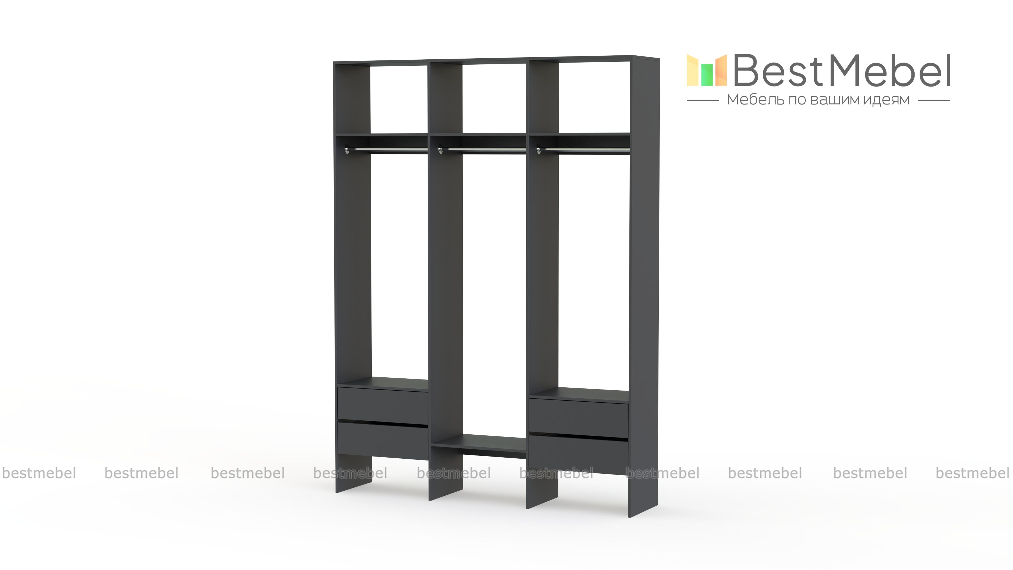 Стеллаж для одежды Мирта 58 BMS — это удобная база для вашей прихожей или гардеробной комнаты. Три перекладины позволяют разместить вешалки с короткой и длинной одеждой, для коробок и сложенных вещей предусмотрены полки, а для мелочей — две пары выдвижных ящиков. Лаконичное оформление и возможность выбора оттенка делают трехсекционный стеллаж практически универсальным. Купить стеллаж для одежды Мирта 58 BMS, изготовленный по вашим размерам, приглашаем в наш интернет-магазин.