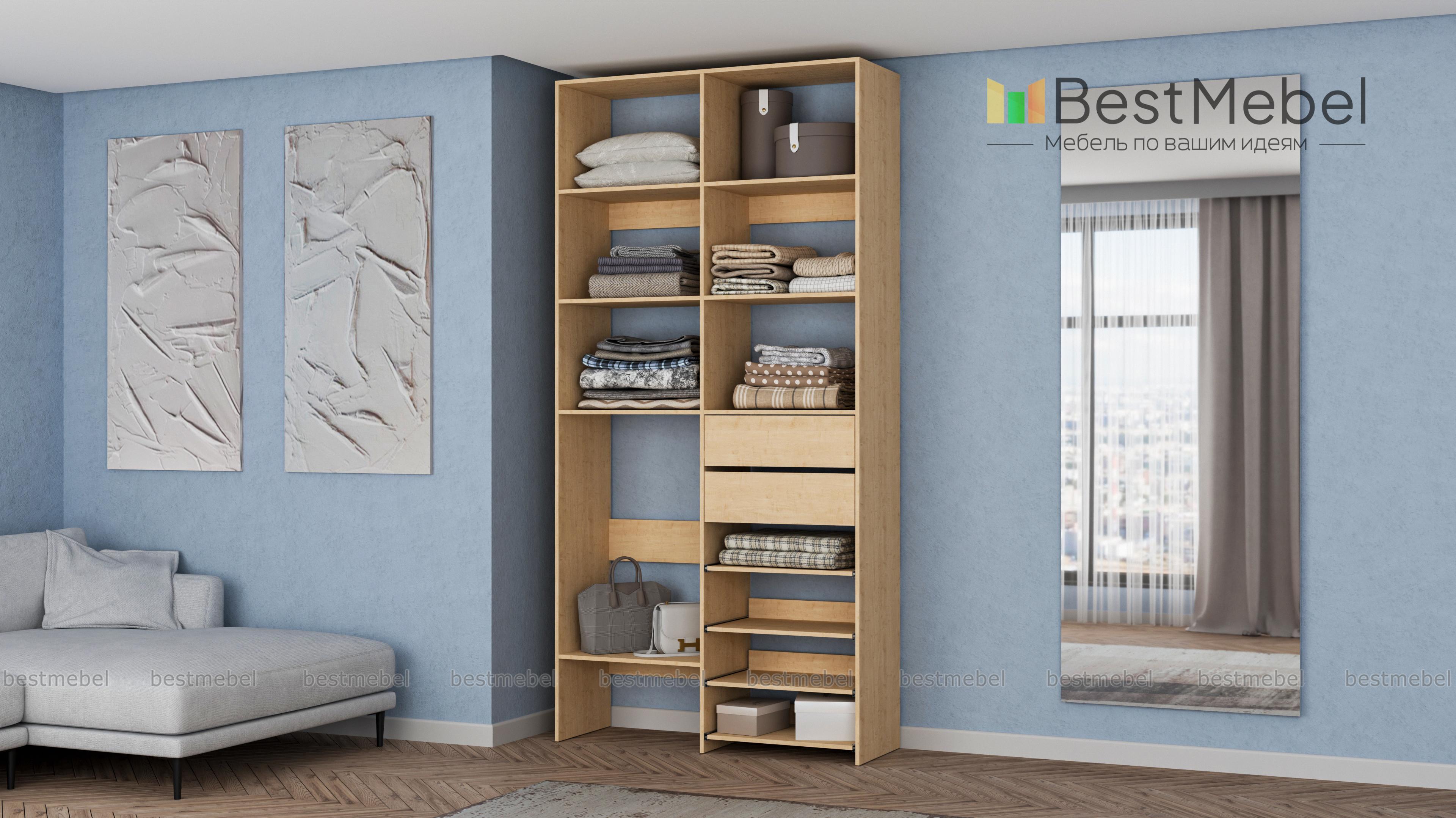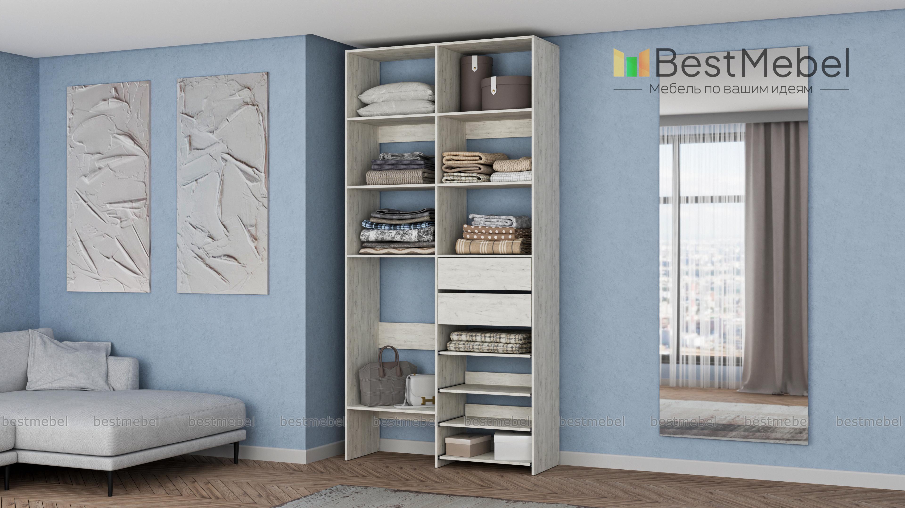 Стеллаж для одежды Мирта 86 BMS поможет вам легко избавиться от беспорядка. Секции разных размеров, два выдвижных ящика и четыре полки на направляющих прекрасно подойдут для хранения сложенной одежды, мелкого трикотажа, корзин и коробок с вещами. Благодаря скромным габаритам стеллаж легко поставить в нишу, разместить в маленькой прихожей или гардеробной. Купить стеллаж для одежды Мирта 86 BMS с выбором цвета и размеров приглашаем в наш интернет-магазин.