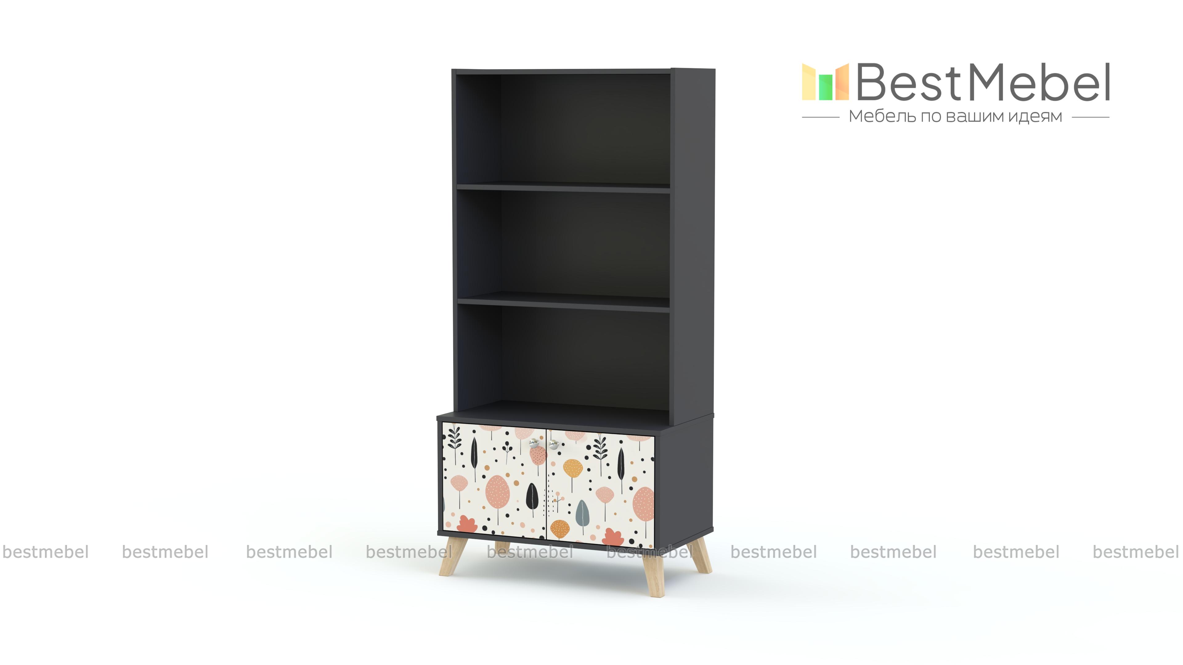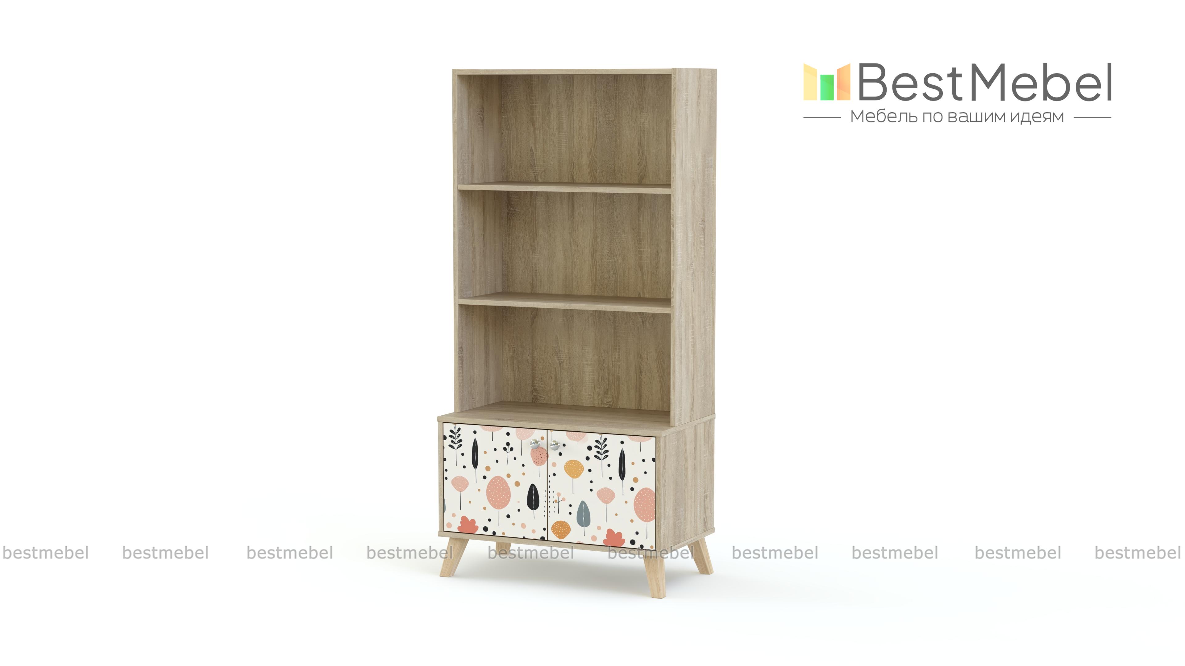 Стеллаж Эльза 1 BMS поможет удобно и красиво поставить книги, разместить игрушки и учебные пособия. Комбинированный стеллаж с открытыми полками и распашным модулем в основании имеет комфортную для ребенка высоту. Устойчивая благодаря скошенным сканди-ножкам конструкция выполнена из экологичной и прочной ламинированной ДСП, на фасаде — пастельный рисунок-фотопечать. Купить стеллаж Эльза 1 BMS вы всегда сможете в нашем интернет-магазине, по желанию изменив цвет и размеры.