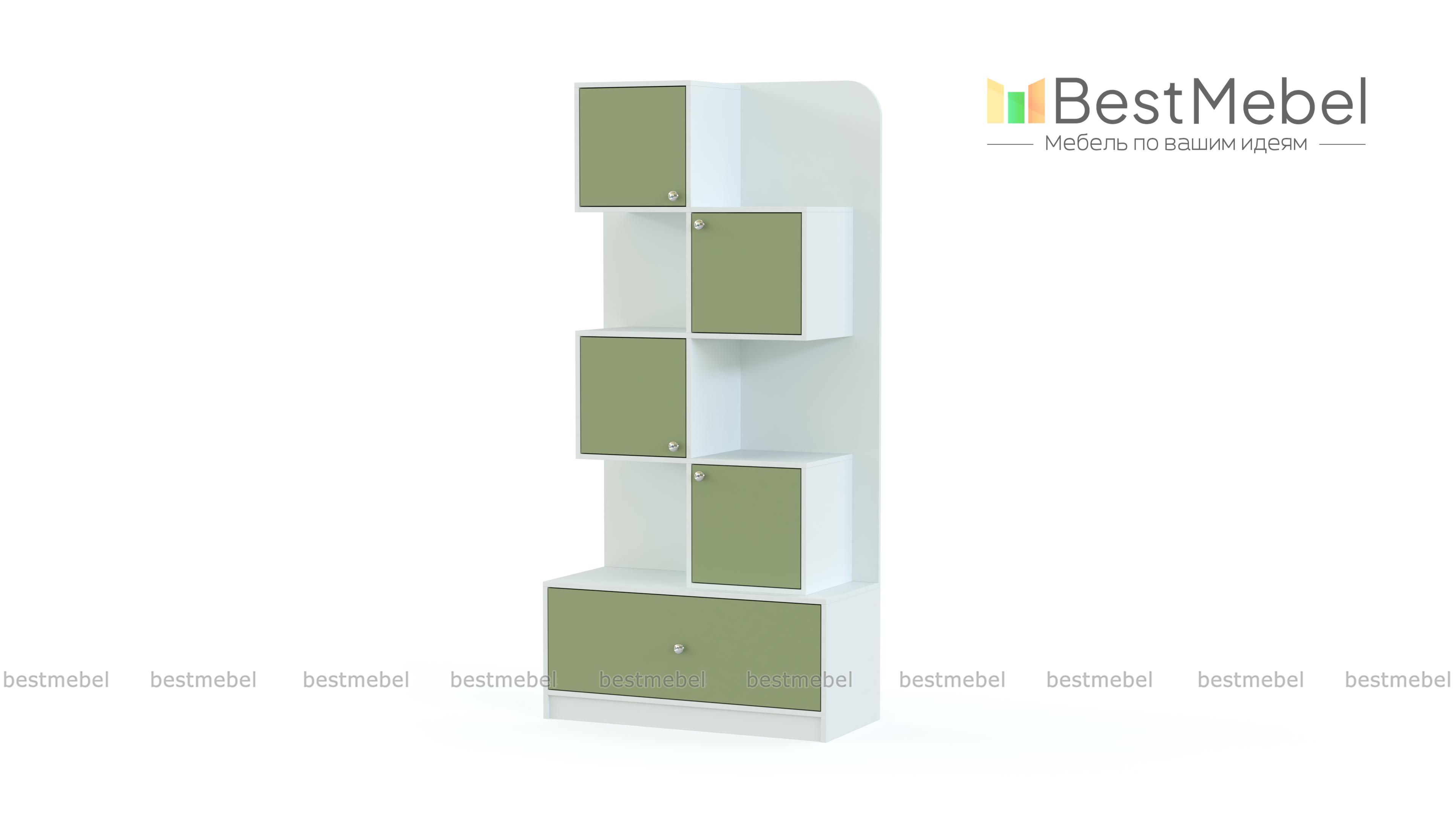 Стеллаж Леон 1 BMS дополнит интерьер современной детской удобной системой хранения для книг, игрушек, принадлежностей для творчества и многого другого. Модель оборудована широким выдвижным ящиком в основании и расположенными в шахматном порядке открытыми и глухими распашными секциями. Корпус в древесных тонах скомбинирован с яркими цветными фасадами на выбор. Купить стеллаж Леон 1 BMS и легко поддерживать в детской порядок вам всегда поможет наш интернет-магазин.