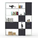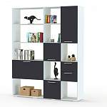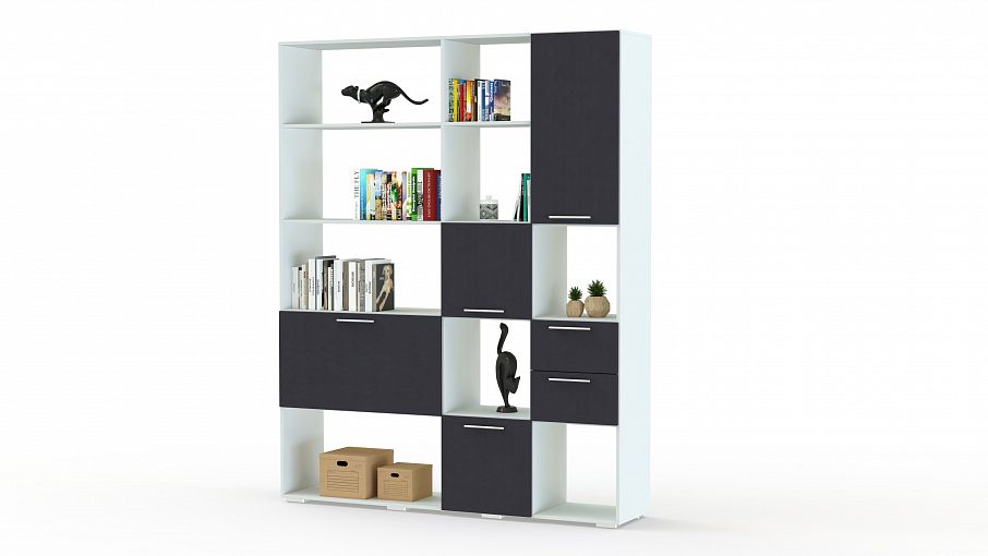 Стеллаж универсальный Брамс 12 BMS может быть установлен вдоль стены или использоваться для зонирования пространства. Практичная модель для дома или офиса выполнена в контрастной черно-белой гамме и отличается лаконичным современным дизайном. Для максимально удобного размещения книг, папок, канцелярских принадлежностей и предметов декора стеллаж оборудован открытыми и глухими полками, а также двумя выдвижными ящиками. Купить стеллаж универсальный Брамс 12 BMS приглашаем в наш интернет-магазин.