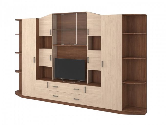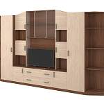 Заказали эту гостиную и остались очень довольны (номер заказа 00000339347) Очень понравилось, что можно внести изменения в конструкцию. Вместо ниши под телевизор, по нашей просьбе сделали в этом месте две дверцы и внутри полку. Менеджер и проектировщик без проблем все приняли, выслали эскиз на почту. После согласования всех деталей, гостиная была изготовлена и через неделю доставлена.