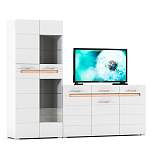 Стенка Бьянко 1 BMS – это лаконичный модульный комплект, который станет практичным решением для небольшой гостиной. Мини-стенка включает в себя два предмета – двухдверный шкаф с витринным отделением и тумбу с тремя распашными дверцами. Продуманная конструкция позволит разместить книги, посуду, предметы декора, домашний текстиль и эффектно оформить зону ТВ. Популярное цветовое решение – светлые древесные тона и белый глянец, поможет гармонично вписаться в современные интерьеры. Купить стенку Бьянко 1 BMS по демократичной цене приглашаем в наш интернет-магазин.