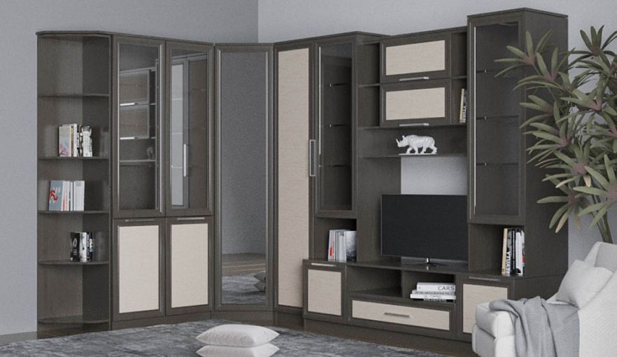 Стенка для гостиной Астория BMS – это популярная современная классика с рамочными фасадами в комфортной коричнево-бежевой гамме под древесный массив. Угловая конструкция модели позволит учесть особенности планировки и выглядит компактно при отличной вместительности. Гостиная оборудована пеналами для одежды, застекленным книжным шкафом с торцевым стеллажом, двумя витринами, тумбой под ТВ и антресолью с глухими и открытыми полками. Купить стенку для гостиной Астория BMS, которая порадует владельцев и высоким качеством материалов, приглашаем в наш интернет-магазин.