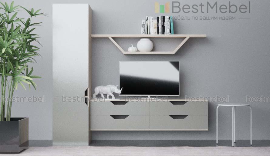 Стенка для гостиной Бриан BMS поможет оборудовать комфортную и стильную зону отдыха. Оптимальная для малогабаритных помещений, модульная конструкция экономно использует пространство, отличается визуальной легкостью и эргономичностью. В комплекте навесная тумба под ТВ с выдвижными ящиками, оригинальная открытая полка, повторяющая формой вырезы на фасадах, и распашной пенал для белья и одежды. Купить стенку для гостиной Бриан BMS с футуристичными глянцевыми фасадами оттенка металлик приглашаем в наш интернет-магазин.