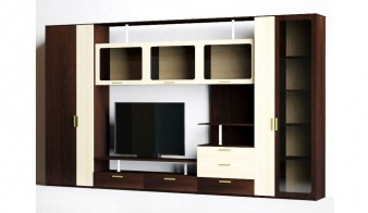 Стенка ГЕЛЯ МДФ BMS – современный комплект в контрастных древесных тонах для комфортного и функционального интерьера. Стенка удобных средних габаритов не только станет украшением гостиной, но и поможет эффектно разместить книги, посуду и технику. Модель оборудована подставкой под ТВ с нишей, выдвижными ящиками, двухдверным шкафом для одежды и комбинированным шкафом с застекленной дверцей. Навесные квадратные витрины с матовыми рельефными стеклами придают конструкции особенно интересный вид. Купить стенку ГЕЛЯ МДФ BMS по отличной цене приглашаем в наш интернет-магазин.