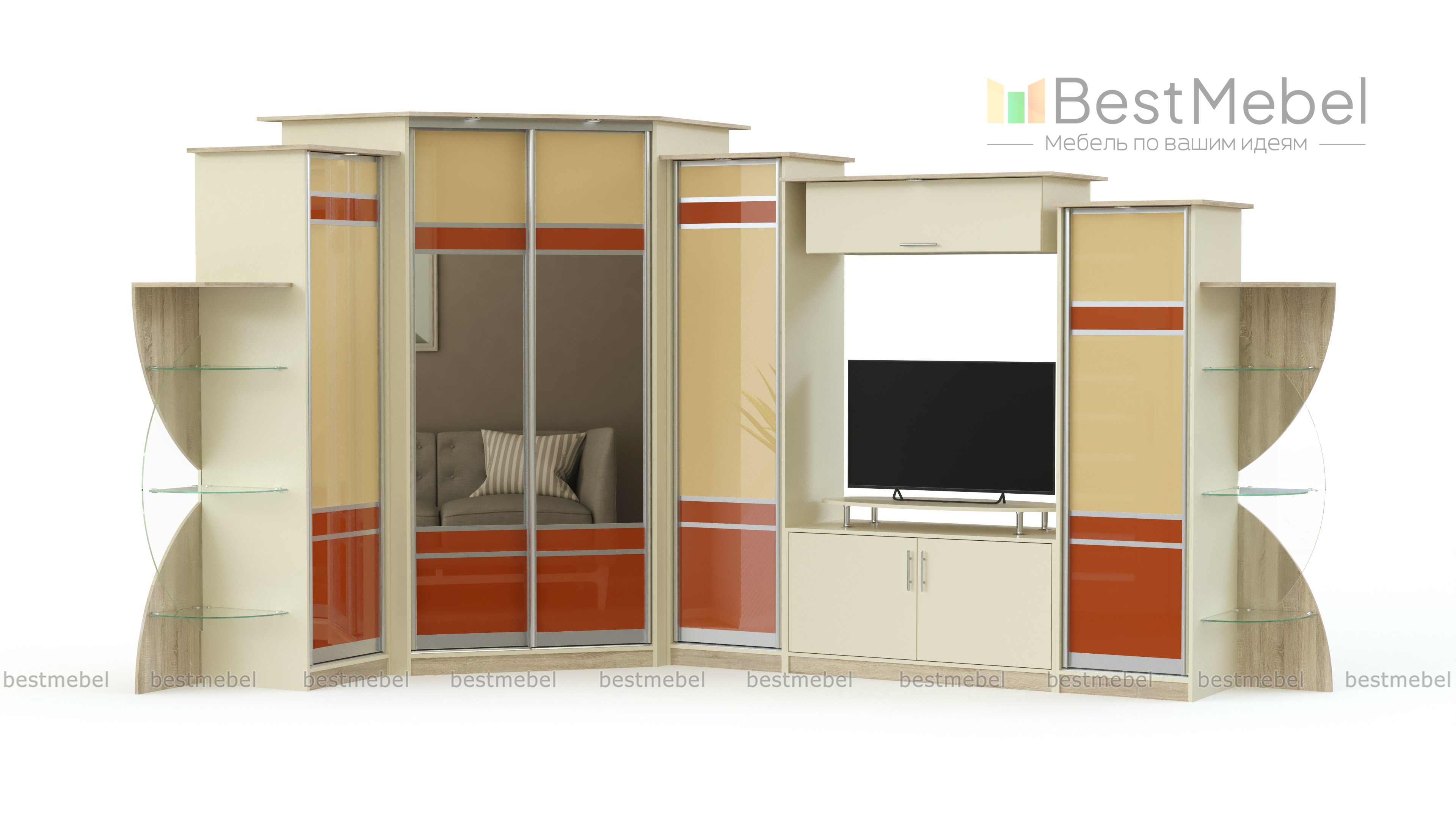 Стенка-купе Поль 1 BMS – это эффектная современная вариация горки. Разноуровневая угловая композиция гармонично дополнит просторные гостиные в стиле модерн, выгодно используя особенности планировки. Стенка включает в себя платяной шкаф-купе с зеркалами, пеналы и секцию с тумбой по ТВ и антресолью, а особенную визуальную легкость конструкции придают торцевые стеклополки с фигурно вырезанными задними панелями и нежная расцветка в пастельных тонах. Купить стенку-купе Поль 1 BMS приглашаем в наш интернет-магазин.