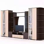 Стенка Нимфа-15 BMS отличается вместительностью, но не смотрится громоздко за счет разноуровневой конструкции и контрастного цветового решения. Композиция объединила секцию под ТВ с тумбой, витринами и открытой книжной полкой, два распашных шкафа – платяной и бельевой, пенал и радиусный торцевой стеллаж для предметов декора. Фасады шкафов украшают зеркальные вставки с пескоструйным рисунком. Купить стенку Нимфа-15 BMS для современной гостиной вы сможете в нашем интернет-магазине.