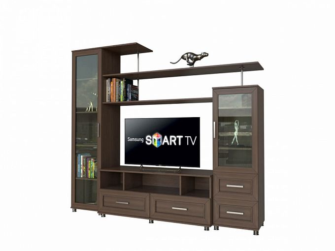 Стенка Палермо 23 BMS с классическими рамочными фасадами одновременно функциональна и эстетична. Разноуровневая композиция объединила шкаф-витрину, комбинированную витрину с выдвижными ящиками, тумбу под ТВ и открытые книжные полки на хромированных опорах. Древесные тона придают интерьеру уют, а стильная фурнитура добавляет индивидуальности. Купить стенку Палермо 23 BMS вы сможете в нашем интернет-магазине, подобрав гармонирующее с интерьером цветовое решение.