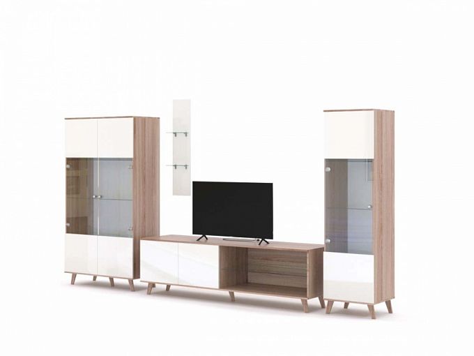 Стенка Розалия BMS – визуально легкая и функциональная модульная композиция для современной гостиной. В комплект входят низкая тумба под аппаратуру с глухим распашным отделением и нишей и два элегантных шкафа-витрины. Практичная конструкция позволит вам разместить как красивую посуду и предметы декора, так и бытовые вещи. В оформлении скомбинированы темные древесные тона и белоснежный глянец. Купить стенку Розалия BMS по выгодной цене вы сможете в нашем интернет-магазине.