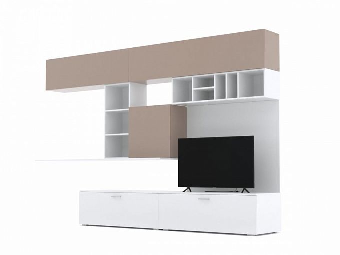 Стенка с рабочей зоной Айви BMS станет прекрасным выбором для небольшой гостиной, студии или молодежной комнаты. Композиция в стиле минимализм выполнена в нейтральных светлых тонах и включает в себя напольные и навесные элементы. Многофункциональная стенка объединила низкую тумбу с панелью под ТВ, столешницу, открытые книжные полки и шкафы с глухими фасадами. Купить стенку с рабочей зоной Айви BMS и сэкономить полезную площадь вам поможет наш интернет-магазин.