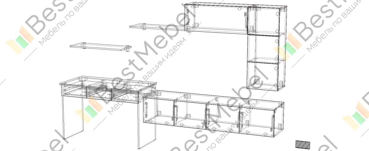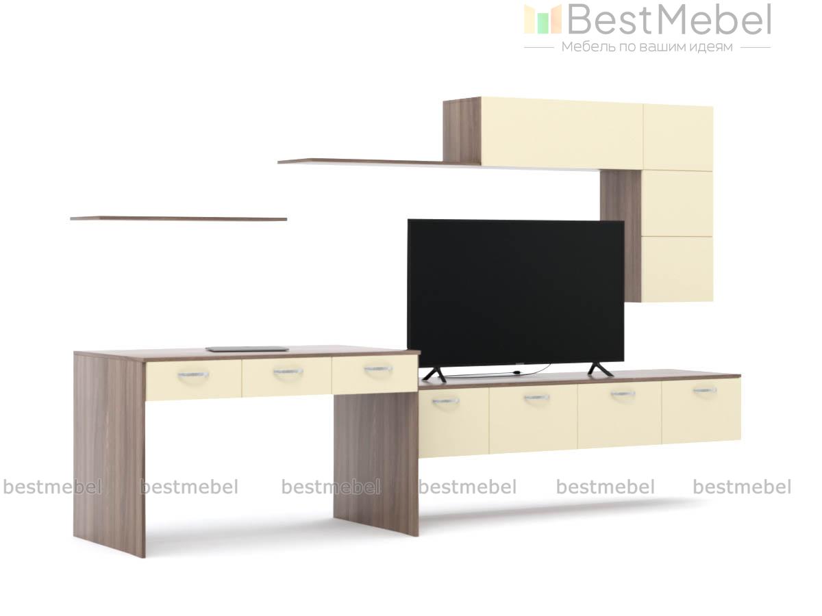 Стенка со столом Вайти 3 BMS сделает интерьер молодежной комнаты или небольшой гостиной комфортным и функциональным. Лаконичная модульная композиция включает в себя напольные и навесные элементы – компьютерный стол с ящиками для мелочей под столешницей, широкую тумбу под аппаратуру с четырьмя отделениями, открытые книжные полки и шкафчики с глухими фасадами. Купить стенку со столом Вайти 3 BMS, выполненную в нейтральных тонах, приглашаем в наш интернет-магазин.