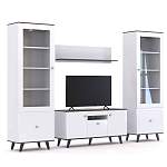 Стенка Тоффи комплектация 1 BMS гармонично впишется в интерьер небольшой современной гостиной и эффектно оформит телезону. Модульная композиция включает в себя широкую низкую тумбу под аппаратуру, навесную открытую полку для предметов декора и книг, а также две вместительные витрины с ящиками в основании. Предметы располагаются на устойчивых, чуть скошенных ножках и выполнены в белом цвете с фрезеровкой и вставками в темном оттенке венге. Купить стенку Тоффи комплектация 1 BMS приглашаем в наш интернет-магазин.