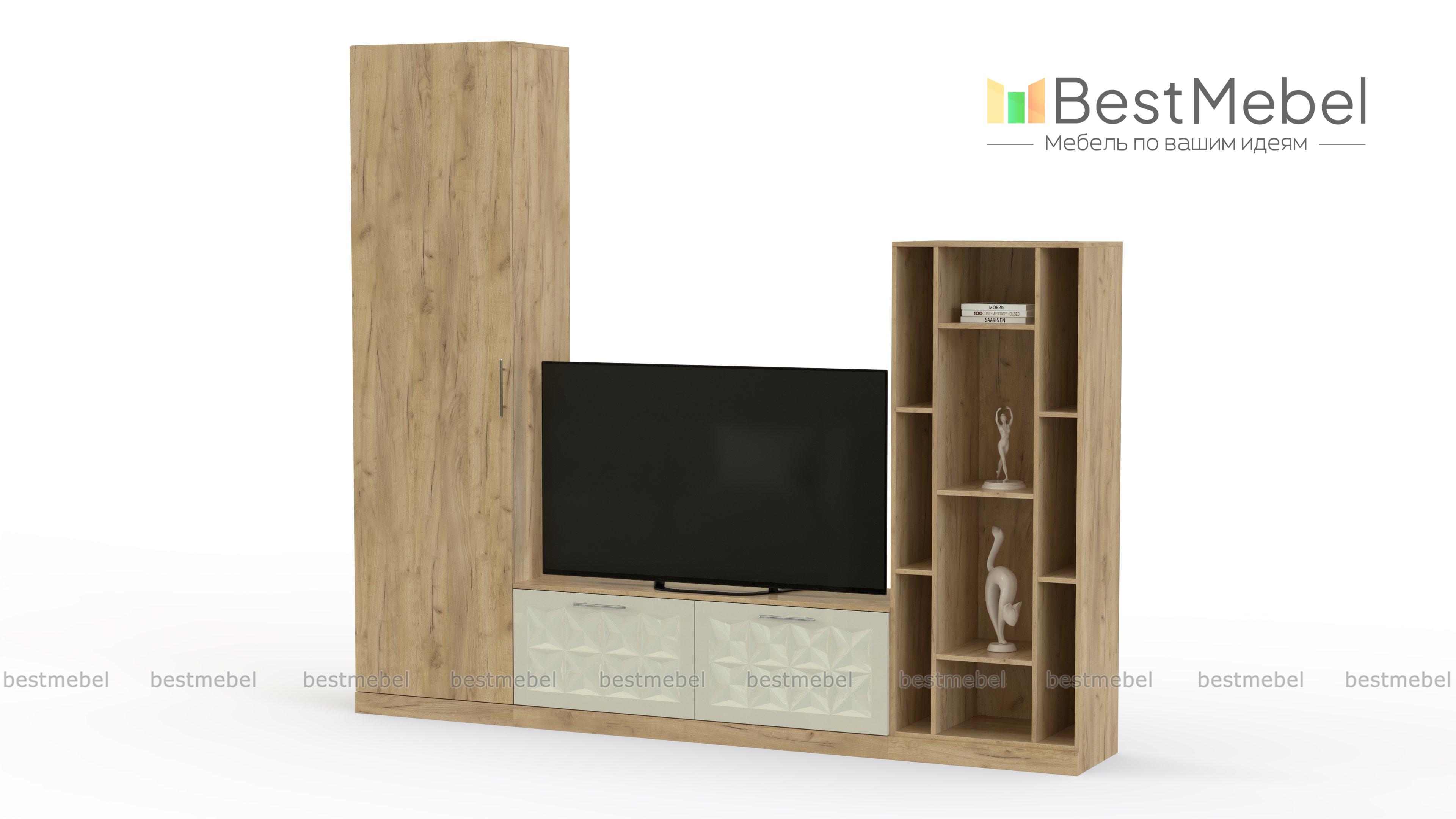 Стенка Вельвет 19 BMS подойдет владельцам современных помещений в стиле минимализм. Лаконичный комплект из трех модулей поможет оформить как просторную, так и небольшую гостиную, подчеркнув достоинства планировки и разместив все необходимое. Композиция включает в себя бельевой однодверный шкаф, тумбу под ТВ и оригинальный стеллаж. Особенно эффектный вид модели придает сочетание матовых нейтральных поверхностей и цветного глянца с рельефным рисунком. Купить стенку Вельвет 19 BMS по лучшей цене приглашаем в наш интернет-магазин.