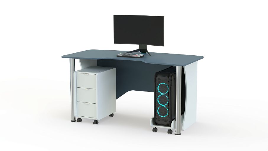 Игровой стол Афина-7 BMS вы сможете использовать для игры, учебы или работы. Модель, выполненная в сочетании белого и синего, безопасно скруглена по углам и легко вписывается даже в небольшие помещения. На столешнице с эргономичным вырезом достаточно места для размещения необходимой техники, а для системного блока и рабочих материалов предусмотрены подкатная подставка и тумба с выдвижными ящиками. Купить игровой стол Афина-7 BMS приглашаем в наш интернет-магазин с учетом необходимых размеров.