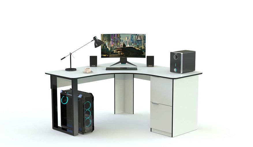 Игровой стол Робеспьер 3 BMS поможет эффективно задействовать угловое пространство. Стильная модель в белом цвете с черной кромкой прекрасно вписывается в современные интерьеры и подходит для продолжительных игровых сессий, работы или учебы. Стол оборудован просторной, скругленной по углам столешницей и дополнен тумбой с двумя распашными отделениями для удобного хранения рабочих материалов. Купить игровой стол Робеспьер 3 BMS приглашаем на сайт нашего интернет-магазина.