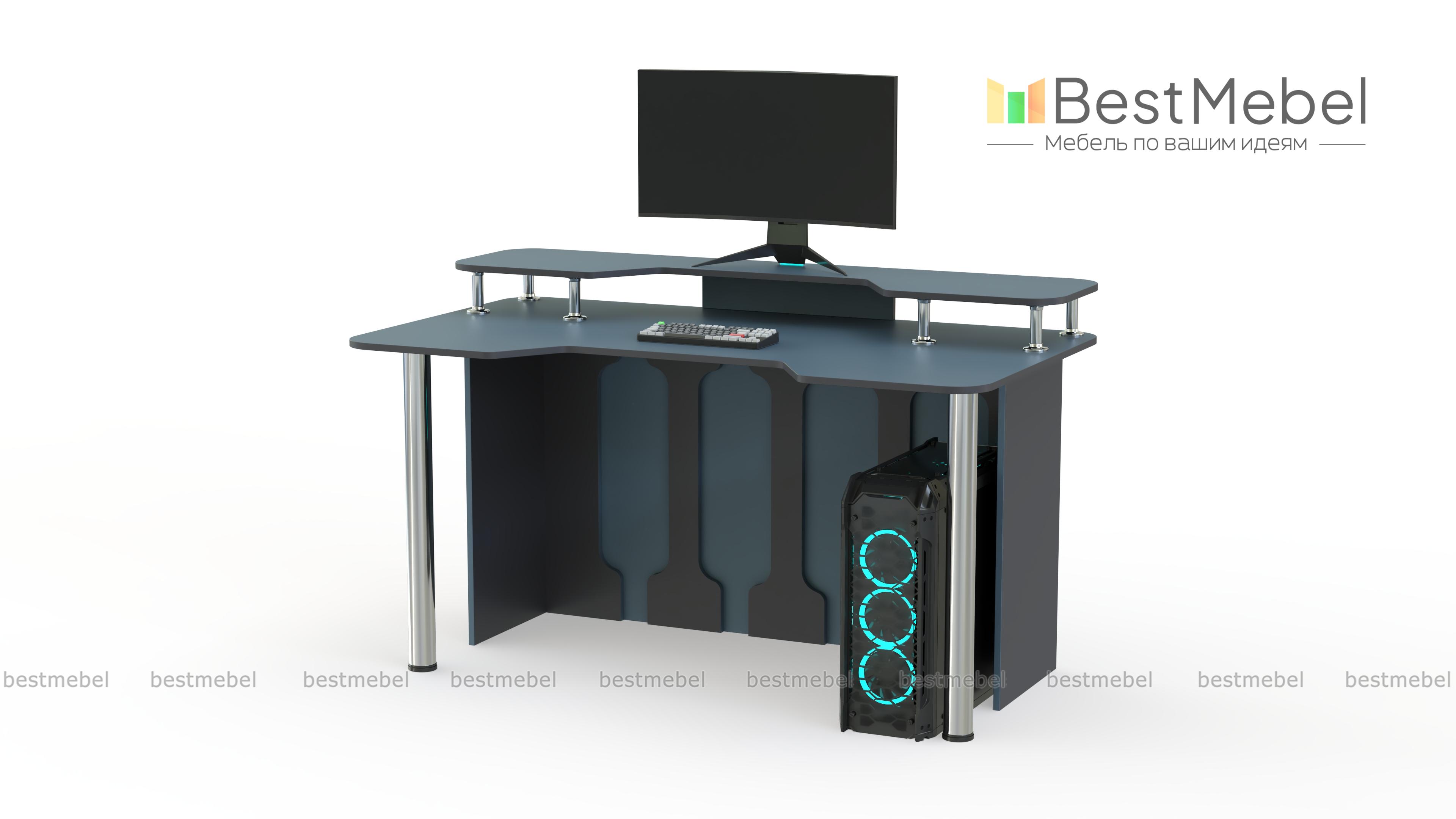 Игровой стол Стар-5 BMS позволит проводить за компьютером долгое время благодаря удобной форме столешницы. Дополненная надстройкой, она поможет разместить на удобной высоте монитор и периферийные устройства, а правильное положение тела обеспечит эргономичная выемка. Яркая модель в сине-белой гамме оборудована устойчивыми хромированными опорами и задней стенкой с декоративными вырезами. Купить игровой стол Стар-5 BMS вы сможете на сайте нашего интернет-магазина.