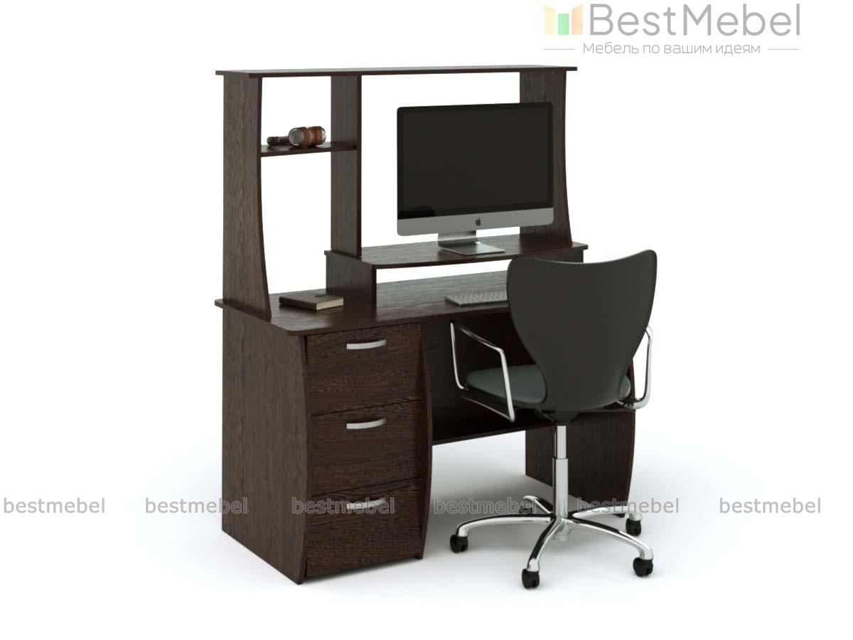 Компьютерный стол Будрио ‒ отличный пример современного стиля. Мягкие линии силуэта и наличие открытых секций придают изделию легкости и отлично вписываются в любой интерьер. Сложная конструкция предусматривает 3 вместительных ящика для документов, открытую нишу для системного блока. Столешница для монитора выше уровня тумбы, что позволяет разместить под ней дополнительную полку для малогабаритной техники. Открытые полки вверху подойдут для элементов декора. Купить модель можно на нашем сайте.