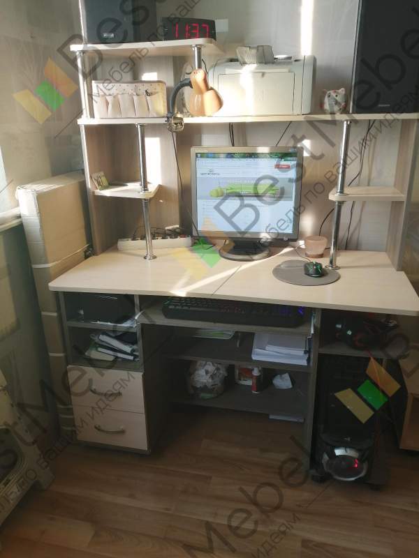 Приобрел данный стол пару месяцев назад. Стол очень понравился. Только полочку вторую снизу можно было бы сделать поуже, чтобы колени не упирались. Так же понравилось что на сайте можно самому конструировать и подбирать что тебе надо. А потом ещё и в 3d посмотреть. Номер заказа 00000919488.