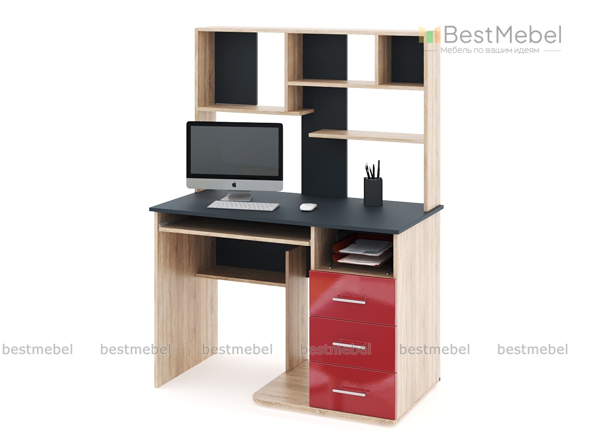 Компьютерный стол МБ 15.1 BMS станет отличным решением для современной молодежной комнаты или креативного офиса. Яркая модель отличается не только продуманной конструкцией, но и эффектным дизайном, сочетая нейтральные древесные тона и контрастные вставки. Стол оборудован выдвижной полкой для клавиатуры, нишей под системный блок, тумбой с выдвижными ящиками и вместительной надстройкой с открытыми секциями. Купить компьютерный стол МБ 15.1 BMS, подобрав необходимые параметры, приглашаем в наш интернет-магазин.