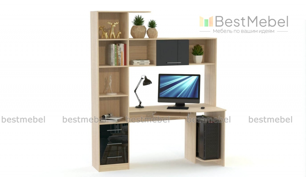 Компьютерный стол МБ 19.1 BMS станет отличным решением для просторных помещений и позволит оборудовать по-настоящему комфортное рабочее место. Крупногабаритная модель оборудована столешницей эргономичной плавной формы, выдвижной полкой для клавиатуры, нишей под системный блок и вместительной надстройкой, совмещенной с комбинированным стеллажом. Отделения разного типа помогут разместить в зоне быстрого доступа все необходимое – канцелярские мелочи, книги, оргтехнику и многое другое. Купить компьютерный стол МБ 19.1 BMS приглашаем в наш интернет-магазин по лучшей цене.
