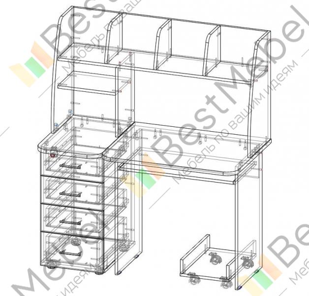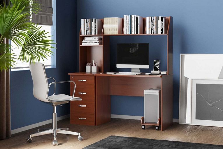 Если Вы ищете рабочий стол который совмещает в себе удобство, большую вместительность и многофункциональность, то Пентиум 4 идеальный вариант. Эта конструкция прекрасно впишется в интерьер. Изделие имеет 4 выдвижных ящика, нишу на мебельных роликах для системного блока и несколько полок сверху.
