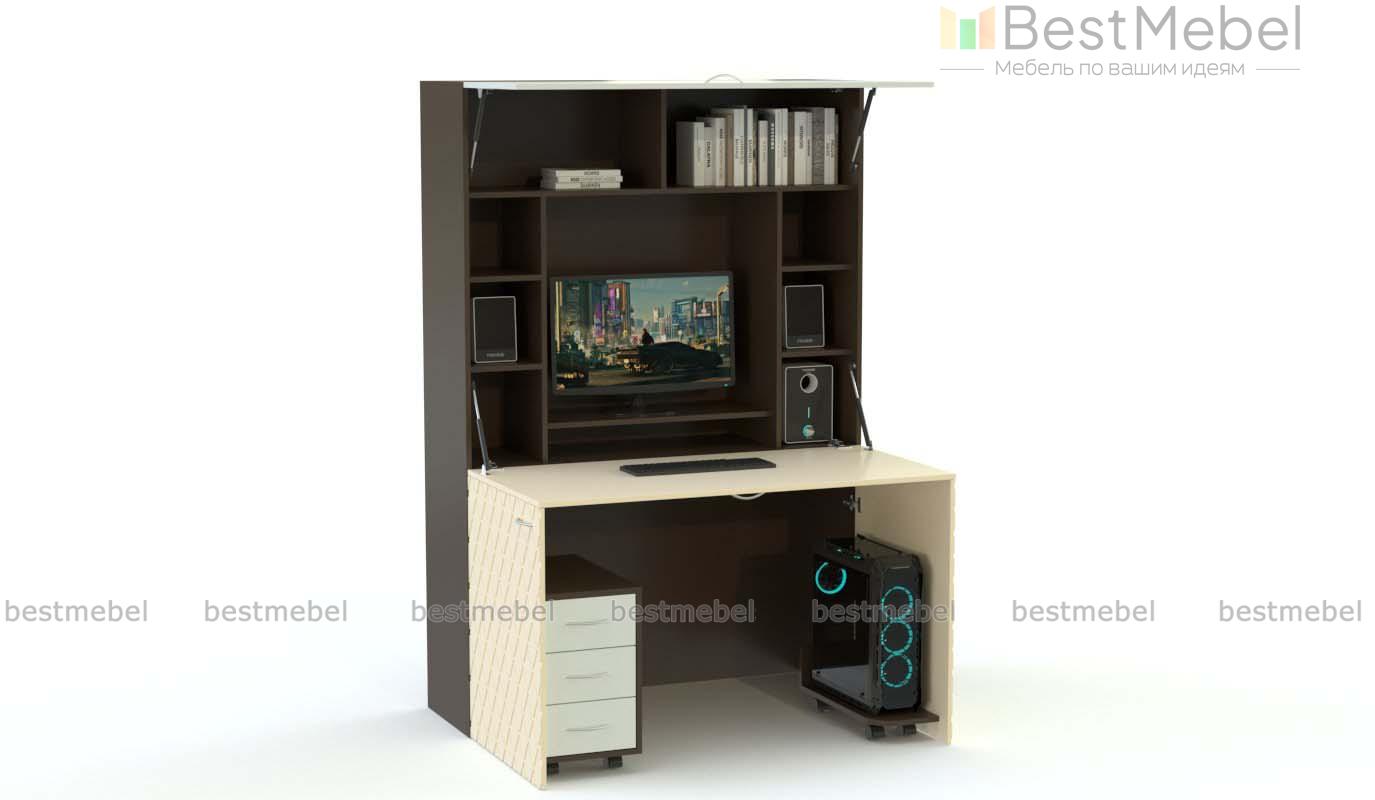 Компьютерный стол-трансформер Марта 3 BMS позволит вам сэкономить пространство и оборудовать комфортное рабочее место даже в небольшом помещении. Компактный шкаф с фрезерованным фасадом легко превращается в рабочее место при помощи откидной столешницы и опорных створок, к которым изнутри крепятся тумба и подставка под системный блок. В центре стола располагаются ниша для монитора и боковые стеллажи, а за верхней дверцей – книжные полки. Купить компьютерный стол-трансформер Марта 3 BMS по доступной цене вы сможете в нашем интернет-магазине.