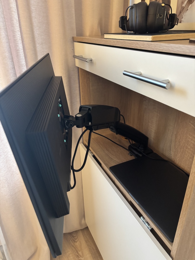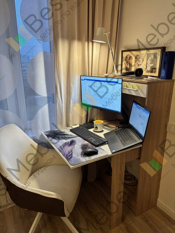 Хороший стол! Изготовили вовремя, очень удобно, что можно выбирать размеры, цвета, собирали самостоятельно, немного помаялись, потому что инструкции по сути нет, но справились!Кое-где доработали напильником: выпилы под плинтус сделали самостоятельно под размер и форму именно своего плинтуса, не стали ставить заднюю стенку снизу, чтобы не загораживать розетку, которая как раз там, с одной стороны в боковой панели у стены сделали небольшой выпил под шнур от лампы. Также важно понимать, что при стандартных размерах высоты, монитор 24” в полку не войдет! Даже у которого стойка регулируется по высоте и в самом нижнем положении - не войдет все равно. Если планируете ставить его туда - ставьте при заказе высоту больше стандартной и уточняйте высоту именно полки. Мы же решили этот вопрос покупкой кронштейна, который впилили прямо в столешницу (благо весь инструмент дома есть). По итогу на самом деле так даже лучше. В целом довольна очень, при очень скромных возможностях площади, которая у меня есть под рабочее место дома, при помощи этого чуда-стола я выжала из этой площади все! И в интерьер вписался как продолжение консоли под телевизором и остальной мебели. К качеству в целом, срокам изготовления и доставки претензий нет.