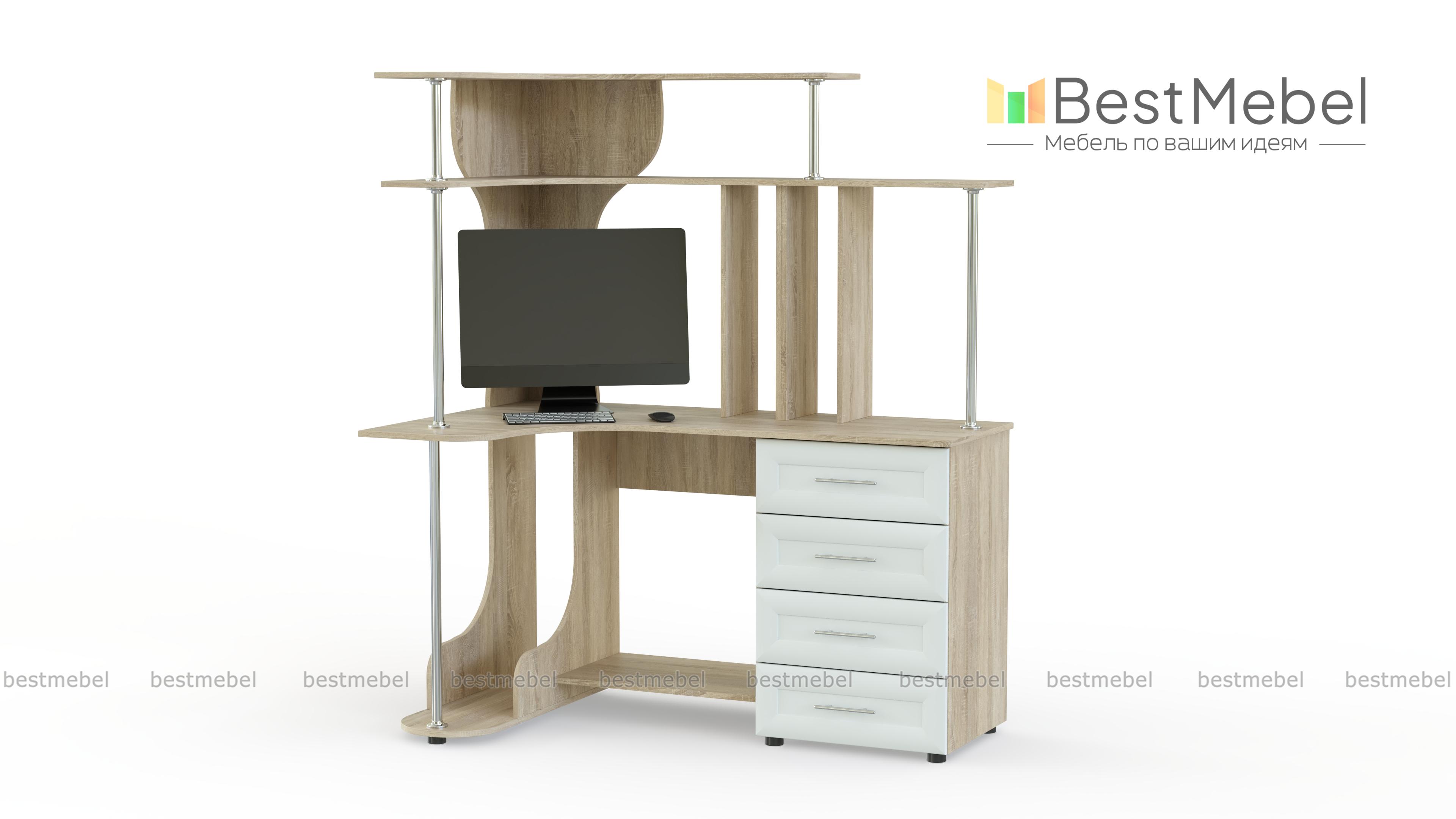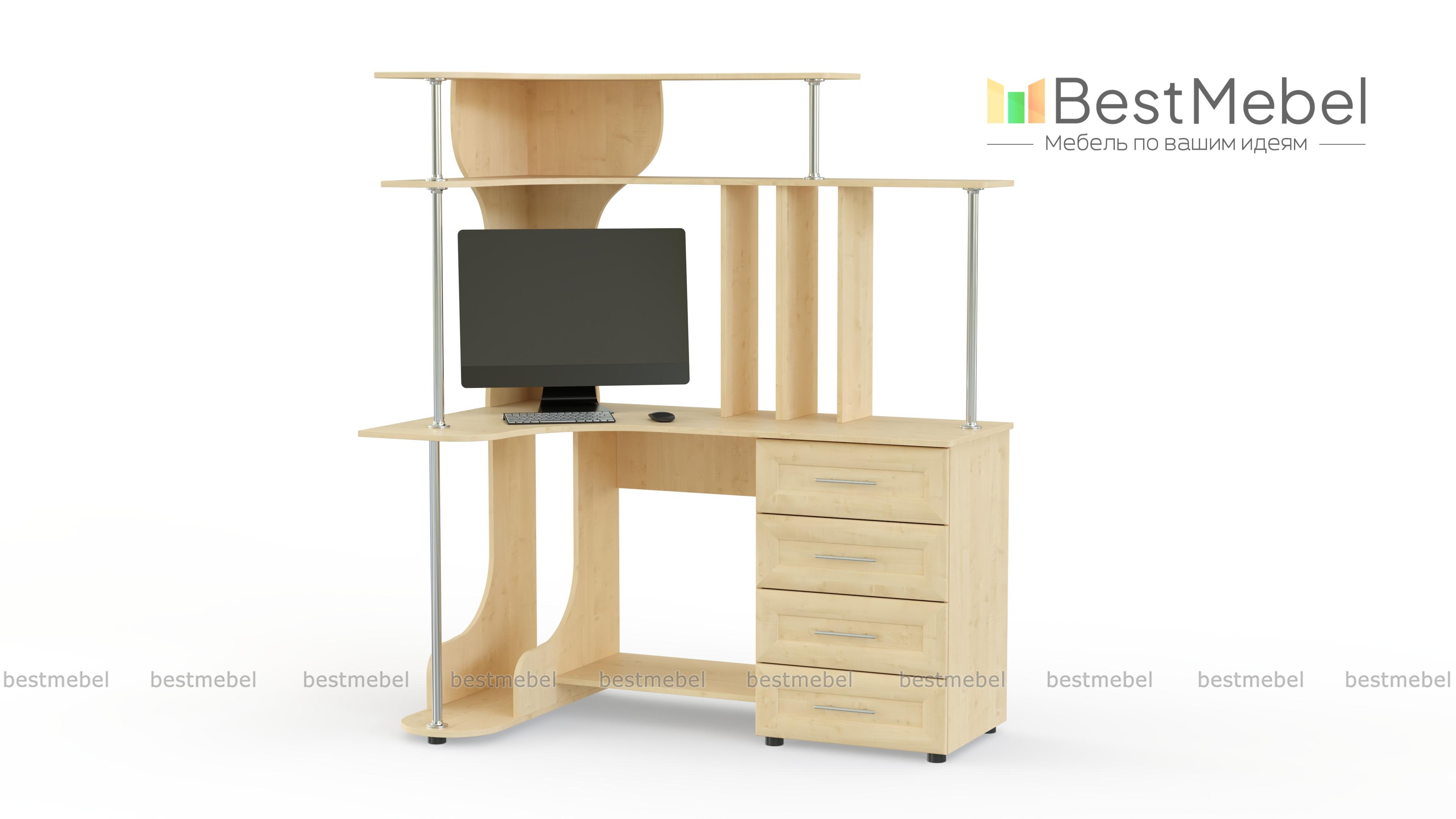 Представляем Вам компьютерный угловой стол Вулкан – отличный выбор для тех, кто любит большую рабочую зону. Изделие имеет интересную конструкцию и включает в себя 4 вместительных ящика, нишу для системного блока, многоуровневую панель для документов или предметов декора. Также имеется подставка под ноги, что обеспечит еще больший комфорт. Выбрав на сайте подходящий цвет изделия, Вы подчеркнете чувство собственного стиля, креативность. Такую модель с легкостью можно заказать прямо на сайте по доступной цене.