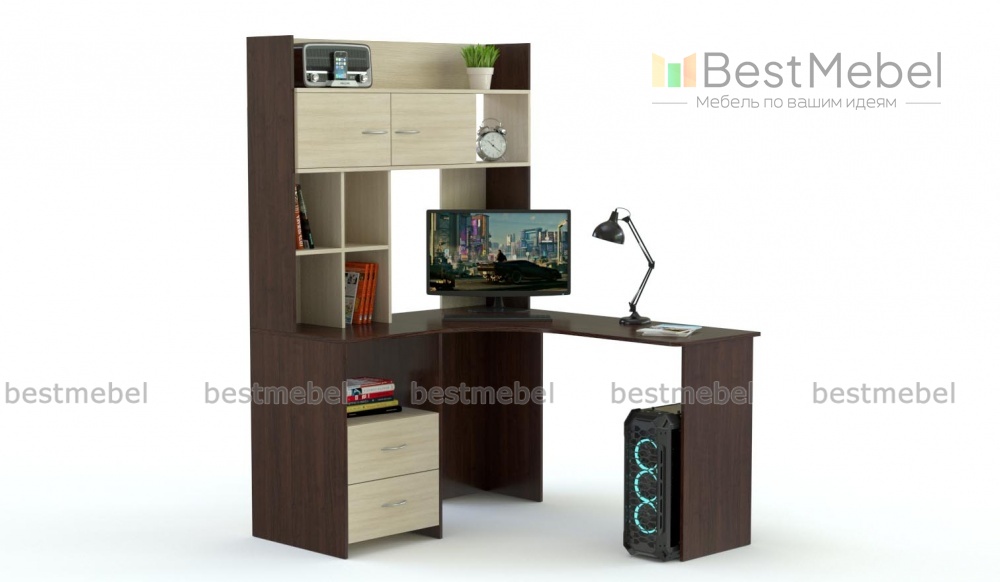 Компьютерный угловой стол Мика BMS представляет собой мини-офис, оборудованный всем необходимым для полноценной работы. Многофункциональная модель оборудована угловой столешницей с эргономичным вырезом, тумбой с выдвижными ящиками для хранения мелочей и надстройкой с нишами, открытыми книжными полками и распашным отделением. Лаконичный дизайн и цветовое решение в древесных тонах помогут легко вписать стол в современные интерьеры. Купить компьютерный угловой стол Мика BMS по выгодной цене приглашаем в наш интернет-магазин.