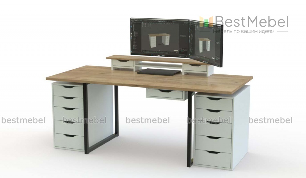 Стол компьютерный Эста 10 BMS дополнит современный интерьер в стиле лофт и поможет рационально организовать рабочее пространство. Двухтумбовая модель, оборудована выдвижными ящиками с ручками-вырезами и открытой надстройкой и мини-ящиками, которые разместят под рукой все необходимые рабочие материалы и прочие мелочи. Износостойкие материалы светлого оттенка скомбинированы с прочным металлическим каркасом. Купить стол компьютерный Эста 10 BMS вы можете в нашем интернет-магазине с корректировкой размеров.