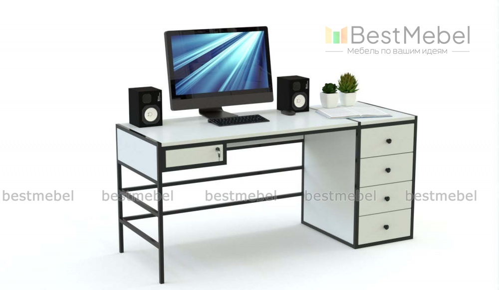 Стол компьютерный Истра 2 BMS поможет оборудовать эргономичное рабочее место в лофтах и индустриальных интерьерах. Модель отличается особенно просторной рабочей поверхностью, на которой легко разместятся монитор и периферийные устройства, и дополнена тумбой с четырьмя выдвижными ящиками и ящиком, закрывающимся на ключ. Стол в белом цвете с контрастным металлическим каркасом смотрится легким, но при этом прочен и долговечен. Купить стол компьютерный Истра 2 BMS приглашаем в наш интернет-магазин с выбором цвета и фурнитуры.